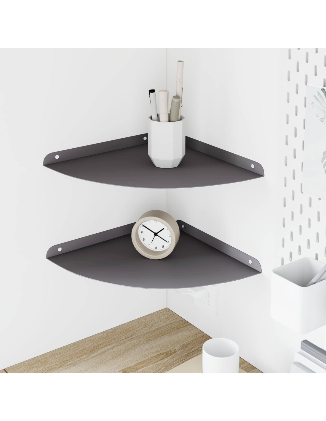 - Montaggio angolare efficace progettata per sfruttare al meglio gli angoli, questa mensola è un'ottima soluzione per stanze piccole. La sua forma rotonda la fa adattare perfettamente a ogni angolo, rendendola utile sia per il decorativo che per il pratico.