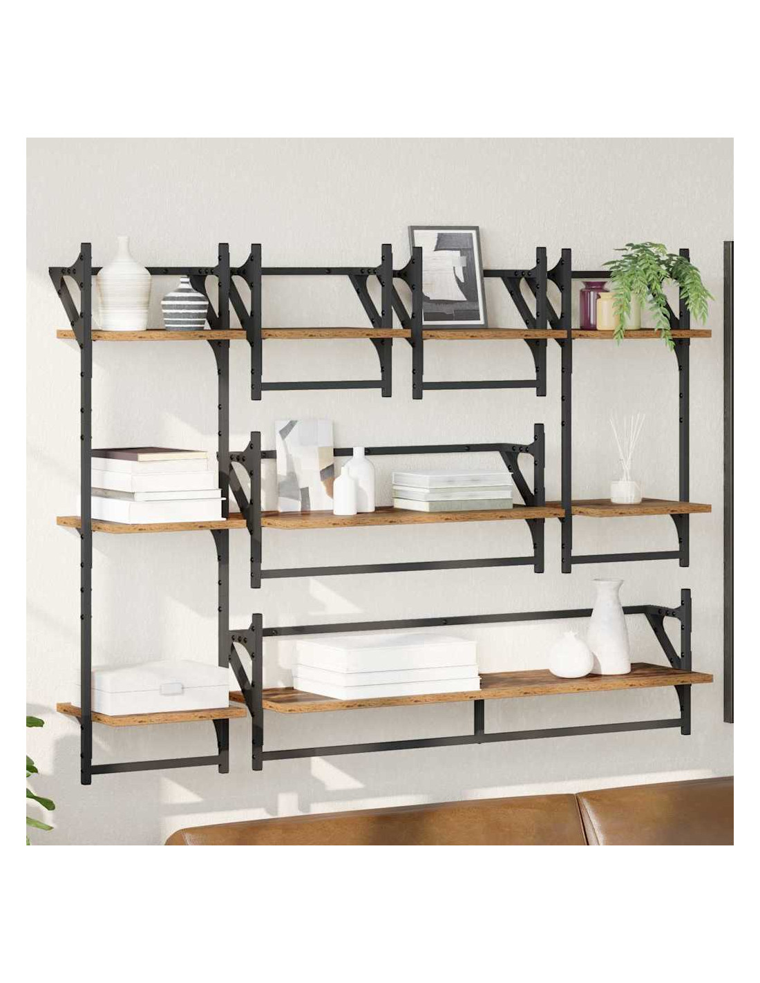 - Materiali: Realizzato in legno ingegnerizzato e metallo robusto, questo set di mensole è elegante e durevole. Il legno ingegnerizzato offre un supporto sicuro, mentre il telaio in metallo garantisce resistenza e stabilità, perfetto per lo stoccaggio a parete.