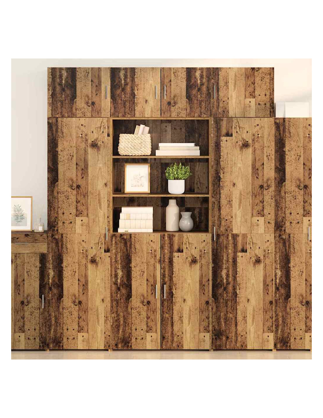 - Costruzione in legno ingegnerizzato L'Highboard è fatto di un legno ingegnerizzato robusto, resistente a deformazioni e crepe. Assicura durabilità e resistenza nel tempo. La finitura opaca dà un tocco elegante e moderno che si adatta a qualsiasi arredamento.