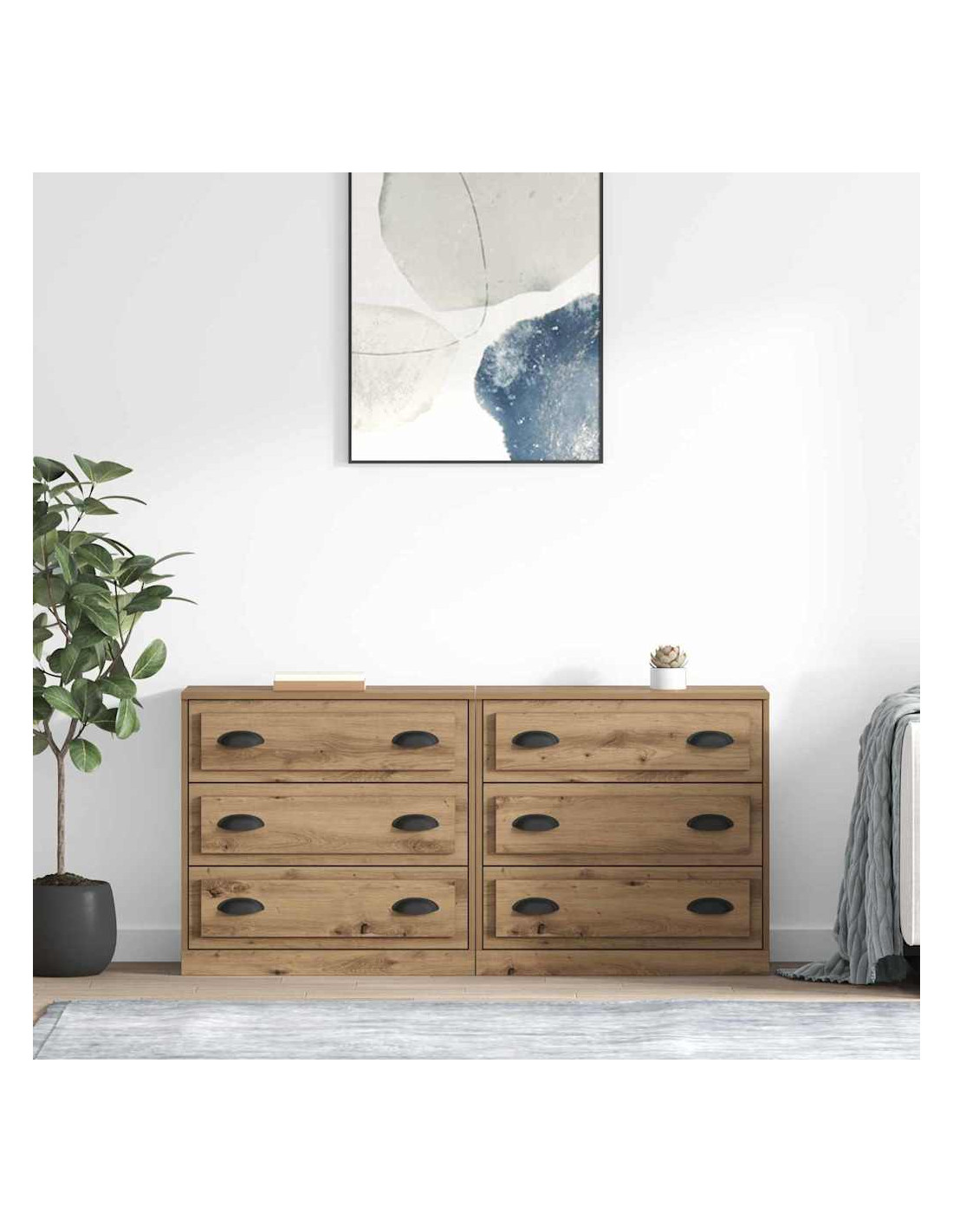 - Maniglie e cassetti funzionali: Le maniglie in metallo nero opaco sono facili da afferrare e completano i cassetti e scomparti senza sforzo. Questo rende lo stoccaggio sia pratico che bello.