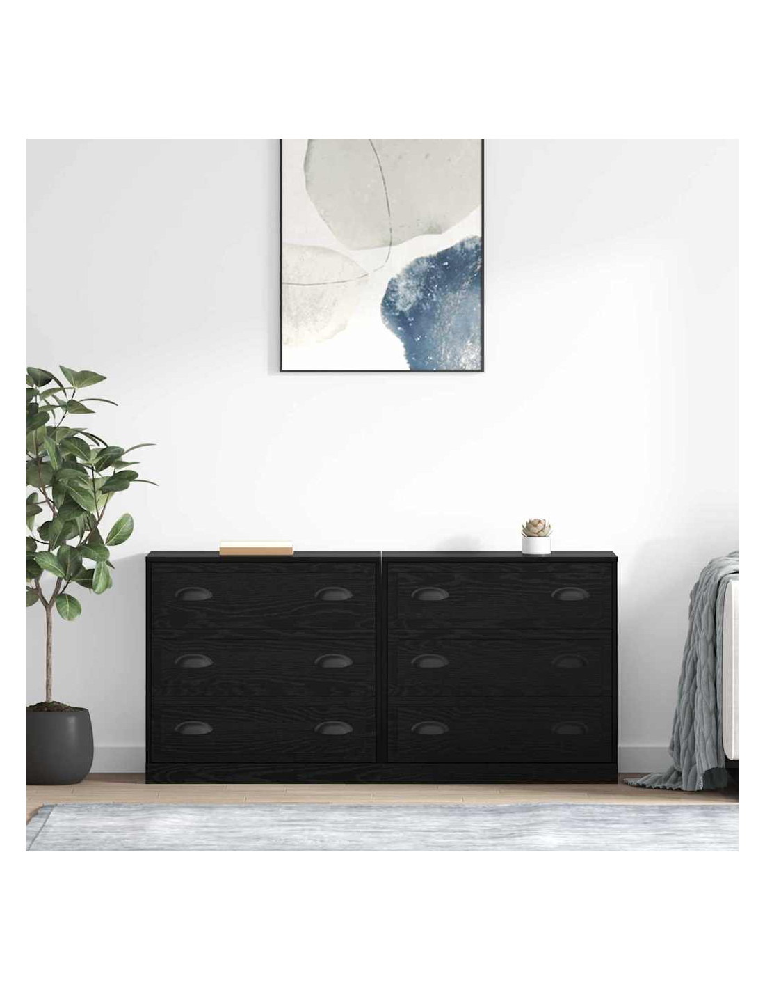 - Maniglie e cassetti funzionali: Le maniglie in metallo nero opaco sono facili da afferrare e completano i cassetti e scomparti senza sforzo. Questo rende lo stoccaggio sia pratico che bello.