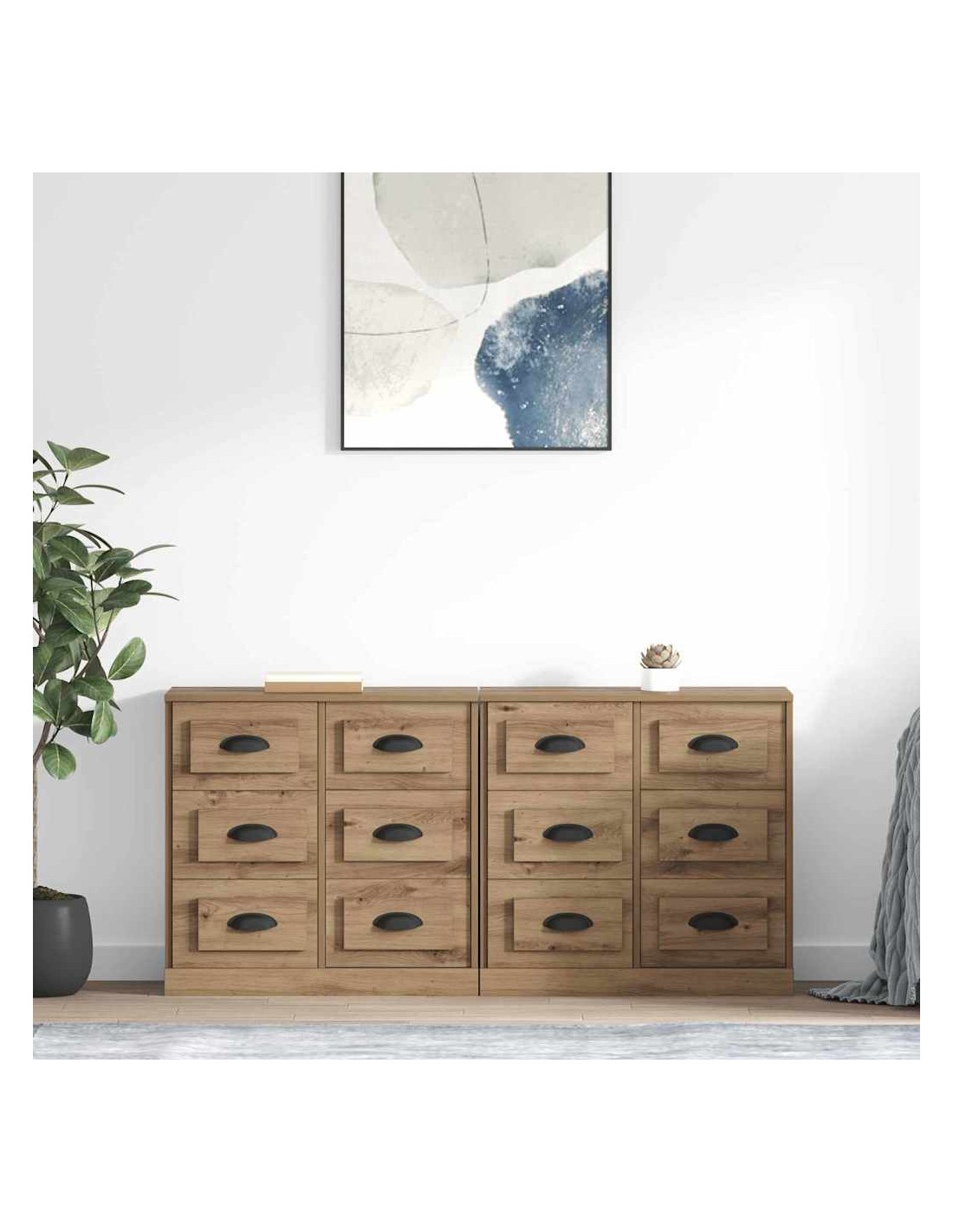 Il set di credenze in legno ingegnerizzato si distingue per un design moderno ed elegante che si adatta a qualsiasi soggiorno. Realizzata in legno ingegnerizzato, offre soluzioni di stoccaggio pratiche e al contempo stilose per sistemare gli oggetti del pranzo o del soggiorno.
