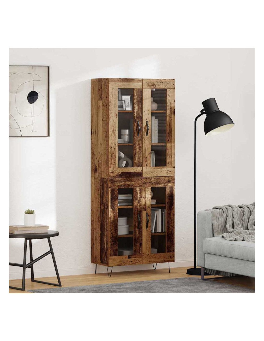 - Caratteristiche / Funzione / Design: Grazie alla costruzione robusta e alle maniglie metalliche, l'accesso è facile. Le porte in vetro aggiungono un tocco di apertura alla stanza, migliorando l'atmosfera. Questo design semplice e utile è perfetto per ambienti moderni.