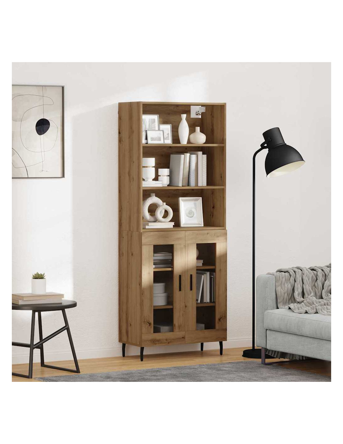 - Materiali: L'highboard è fatto di legno ingegnerizzato, noto per la sua robustezza. Usiamo anche il vetro, che aggiunge eleganza e luminosità. Questo mix offre resistenza e stile, rendendolo un punto centrale funzionale in ogni stanza.