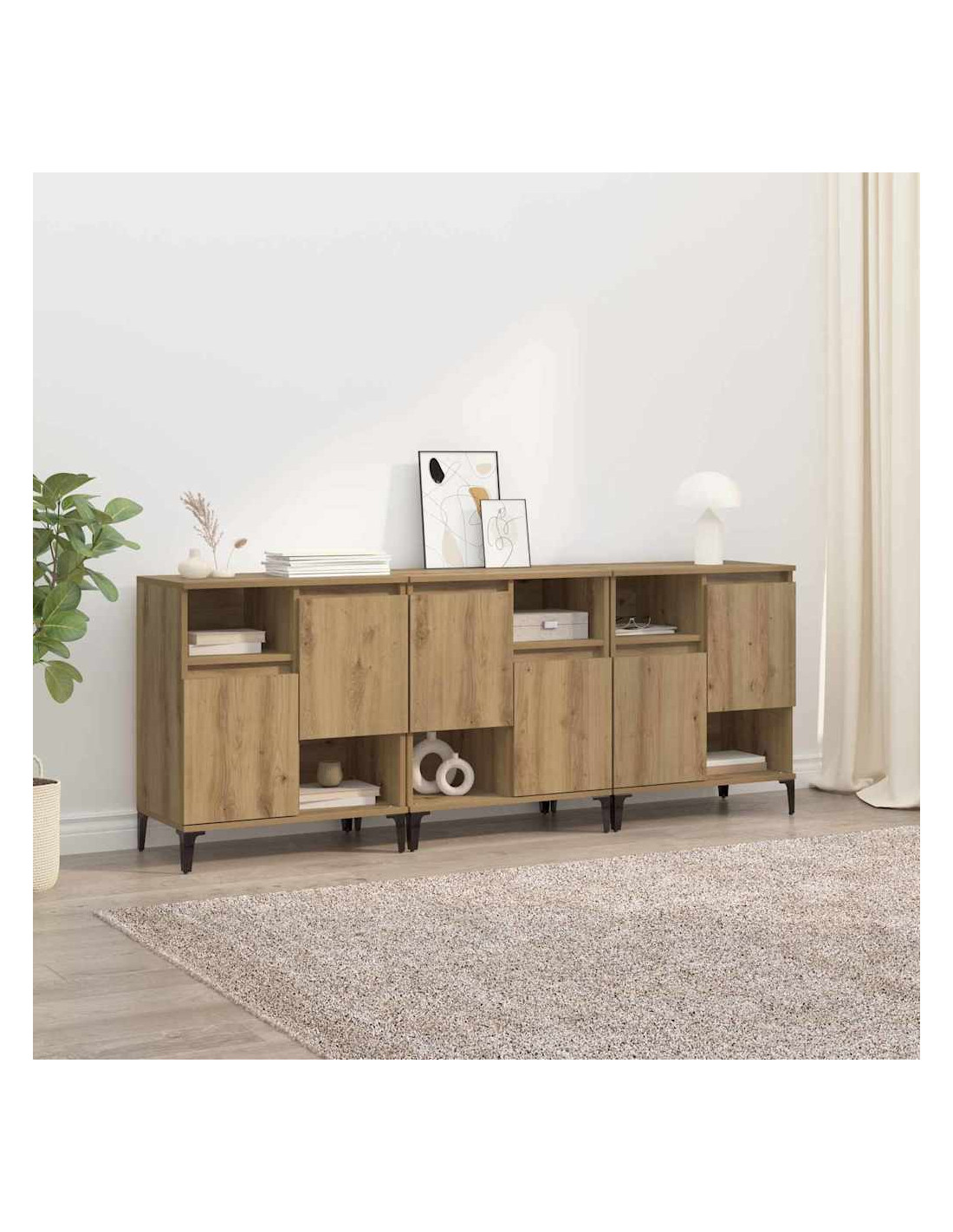 - Materiali di qualità: Realizzata in legno ingegnerizzato, questa credenza è robusta e ha una superficie liscia, quindi è facile da abbinare ai tuoi arredi. È un pezzo che dura nel tempo e offre praticità.