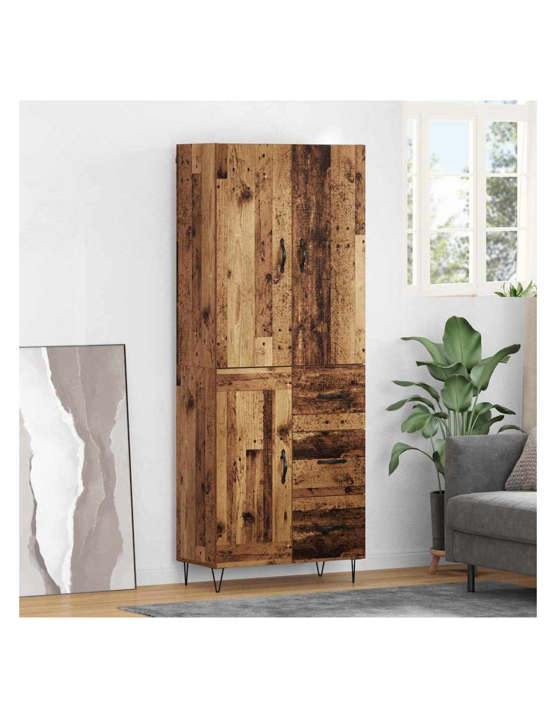 - Costruzione in legno ingegnerizzato: Questo highboard è fatto in legno ingegnerizzato resistente, robusto e duraturo, ideale per l'uso quotidiano senza segni di usura. La sua struttura solide offre una base sicura per tutte le tue esigenze di stoccaggio.