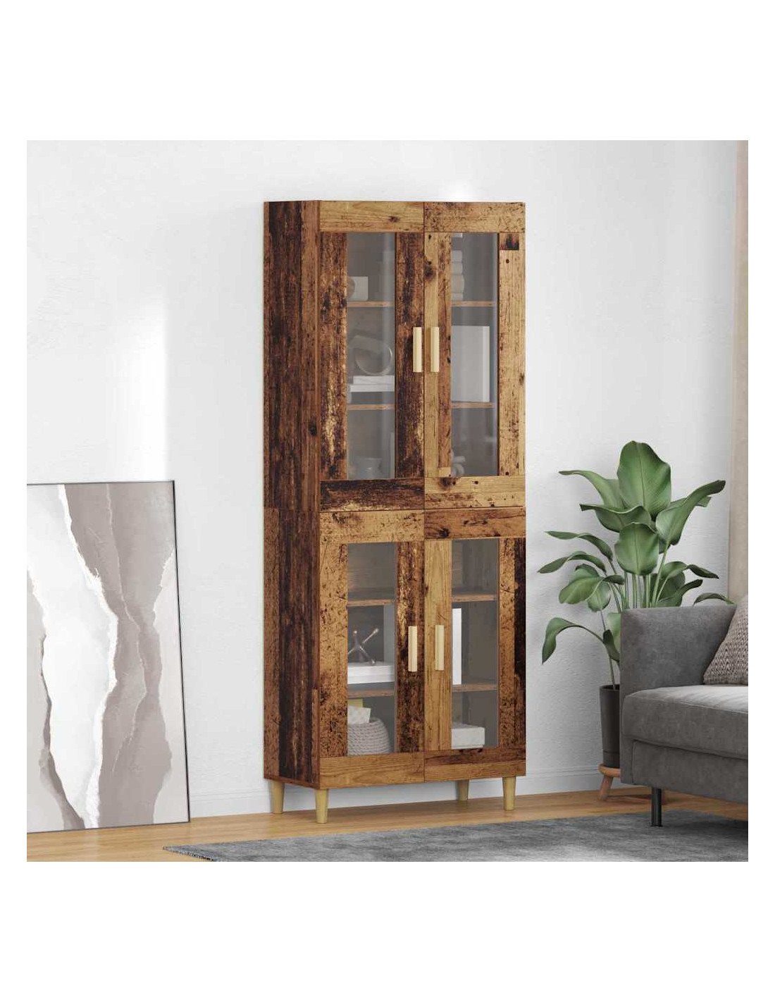 - Porte in vetro e legno eleganti Con una combinazione di porte in vetro e legno ingegnerizzato, l'highboard ha un'atmosfera moderna. Questa unione di materiali offre un aspetto vivace, lasciando intravedere il contenuto rimanendo ordinato per chi lo usa.