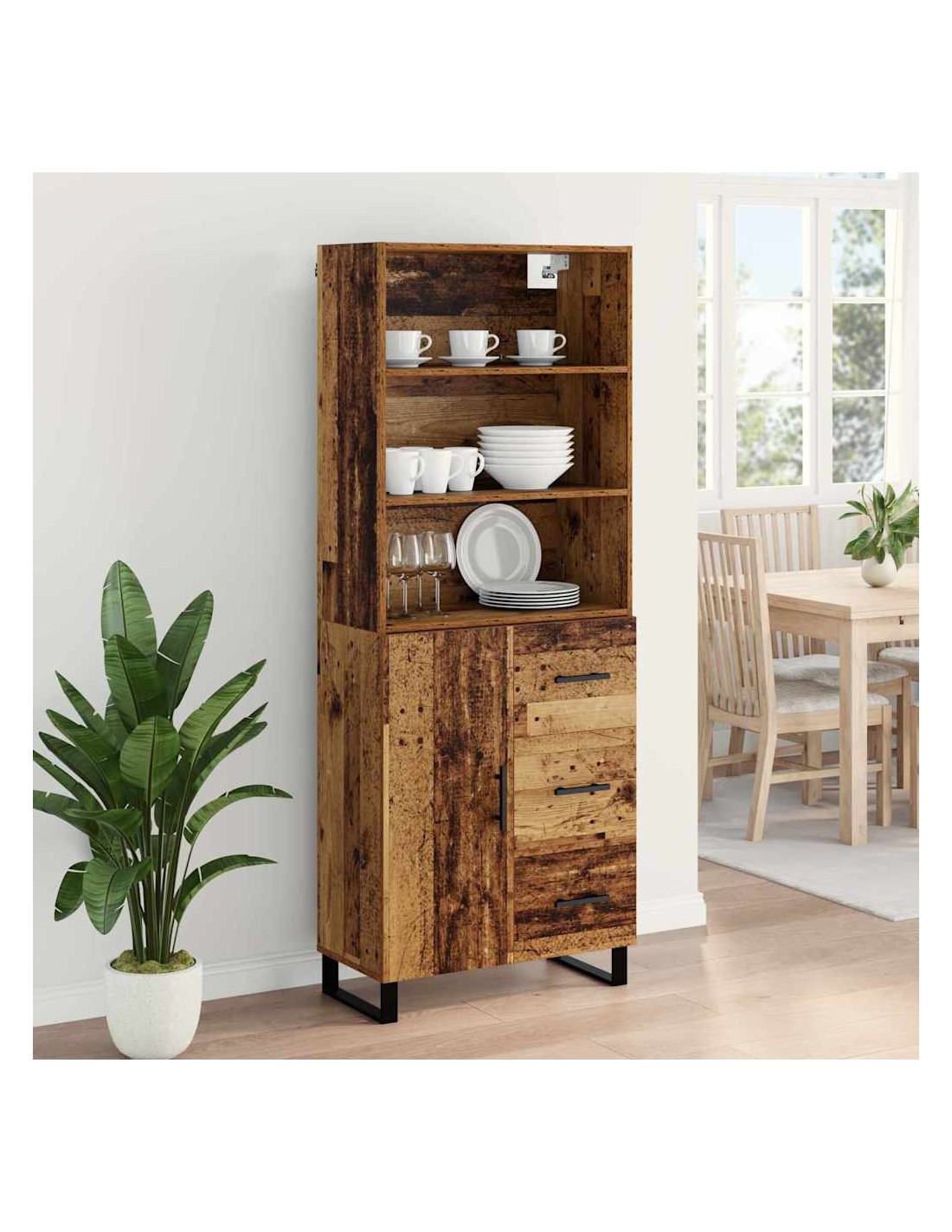 - Materiale in legno ingegnerizzato Questo highboard è realizzato in legno ingegnerizzato, conosciuto per la durata e resistenza nel tempo. Ha un aspetto moderno e lucido che va benissimo con stili di design minimalisti, fornendo una base solida per riporre vari oggetti. Grazie alla sua costruzione forte, l'highboard resiste all'uso quotidiano mantenendo un look elegante.
