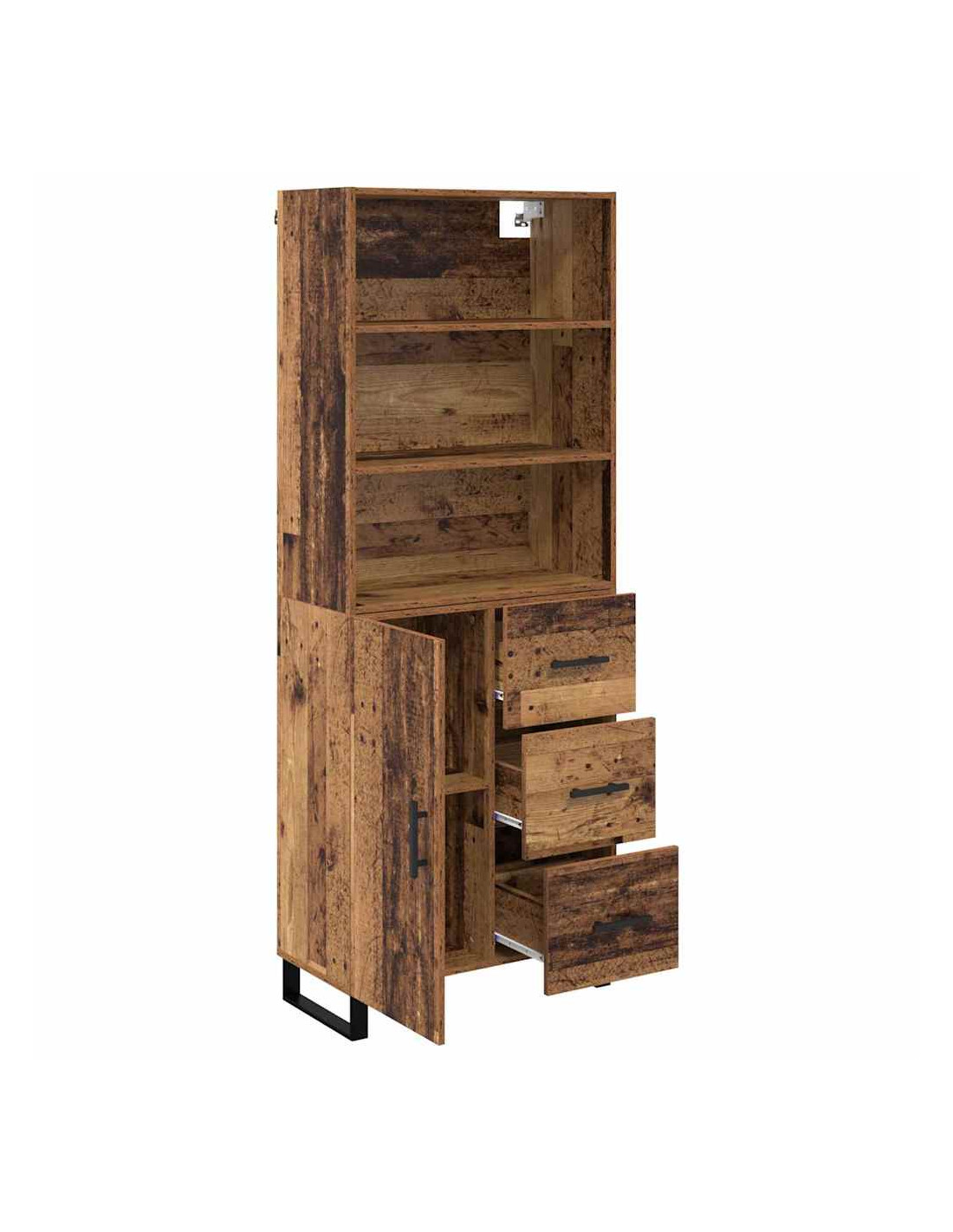- Piedi moderni e eleganti L'highboard ha robusti piedi in metallo nero con un design a gamba quadrata. Questi piedi non solo aggiungono un tocco moderno, ma forniscono anche stabilità su vari tipi di pavimento.