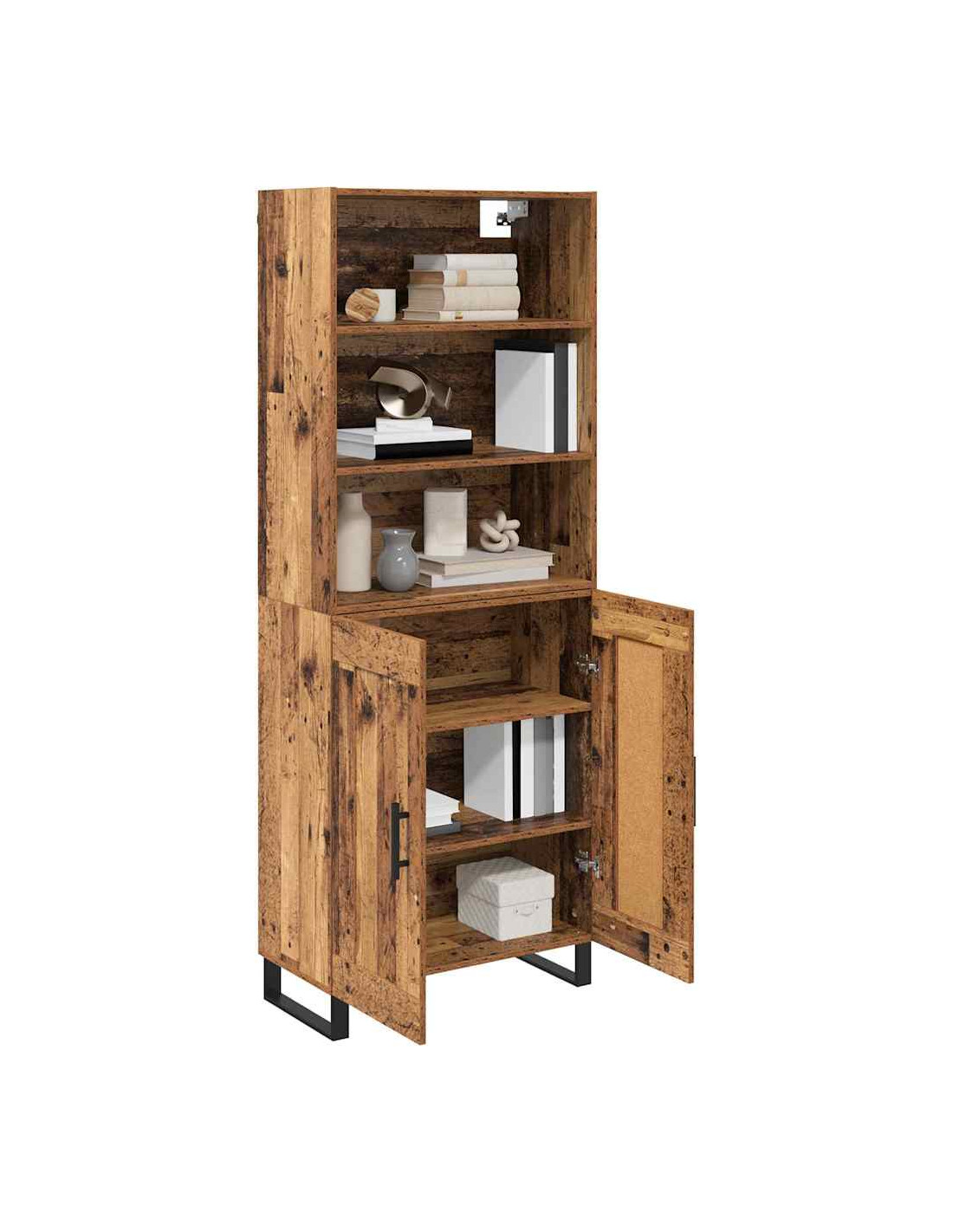 - Piedi moderni e eleganti L'highboard ha robusti piedi in metallo nero con un design a gamba quadrata. Questi piedi non solo aggiungono un tocco moderno, ma forniscono anche stabilità su vari tipi di pavimento.