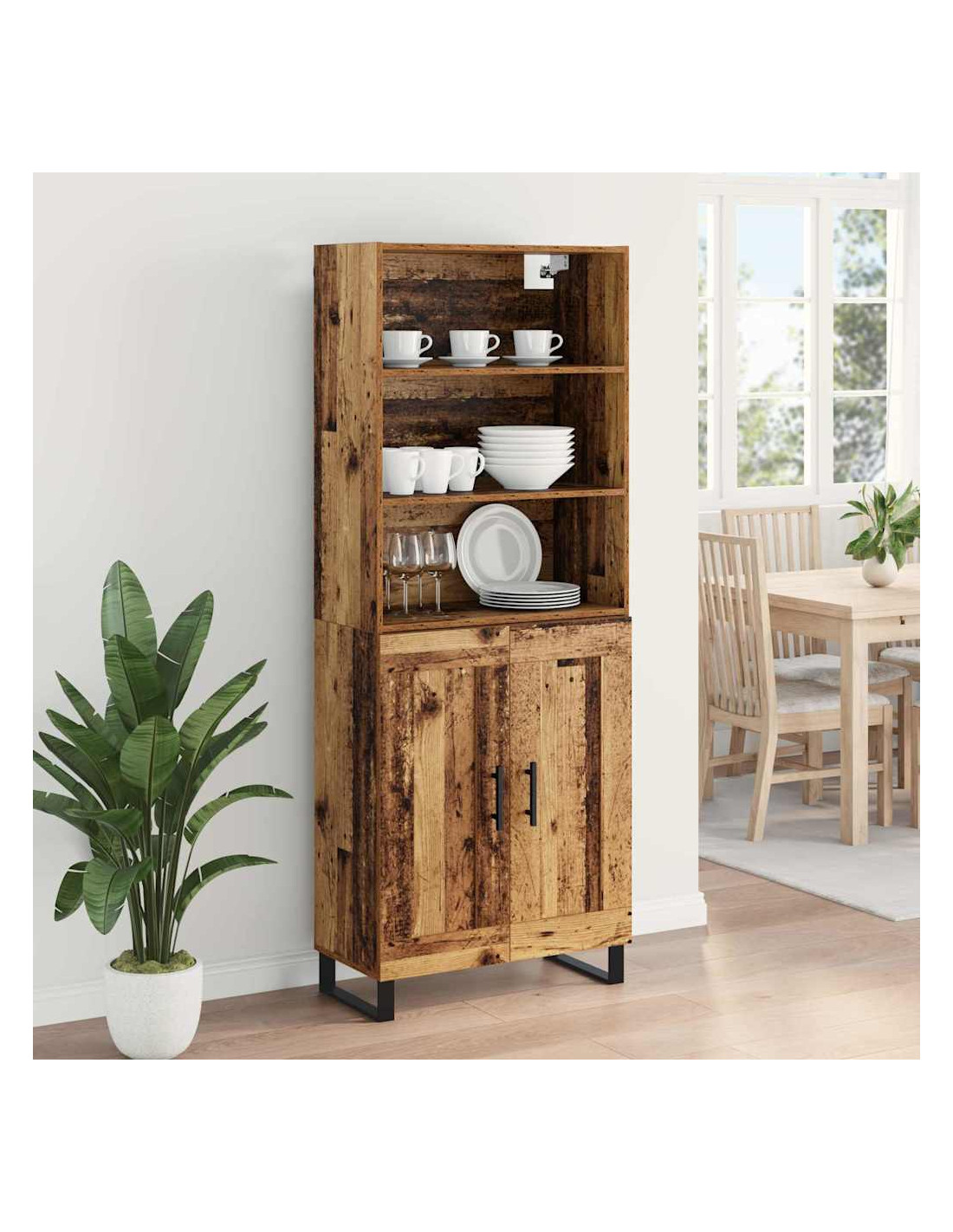- Ripiani funzionali Dotato di ripiani in legno ingegnerizzato, questo highboard offre spazi versatili per esporre o riporre i tuoi oggetti. Il design semplice dei ripiani è adatto per stoviglie e decorazioni, mantenendo la stanza ordinata e complimentando l'estetica moderna dell'highboard.