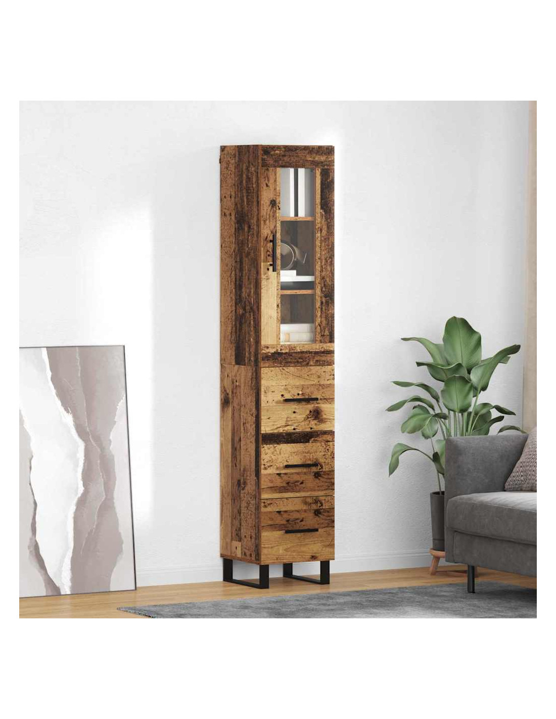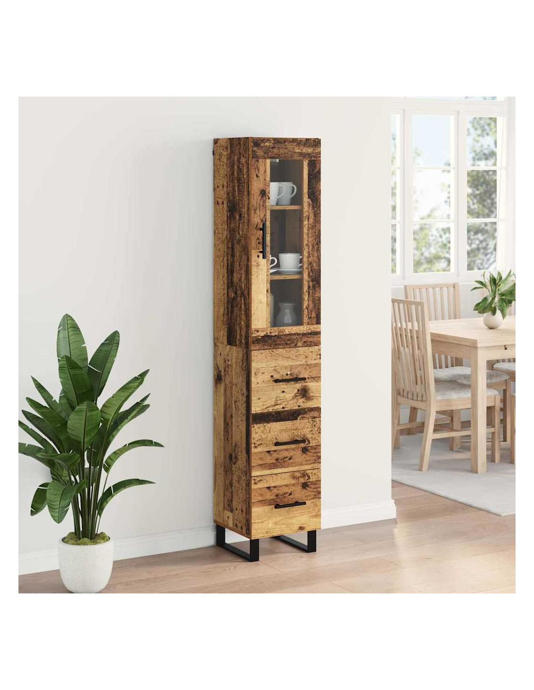 - Piedini in metallo nero: L'highboard poggia su piedini in metallo nero che offrono supporto sicuro. Questi piedi eleganti non solo aggiungono stabilità su varie superfici, ma completano anche il design moderno, rendendolo ancora più attraente.
