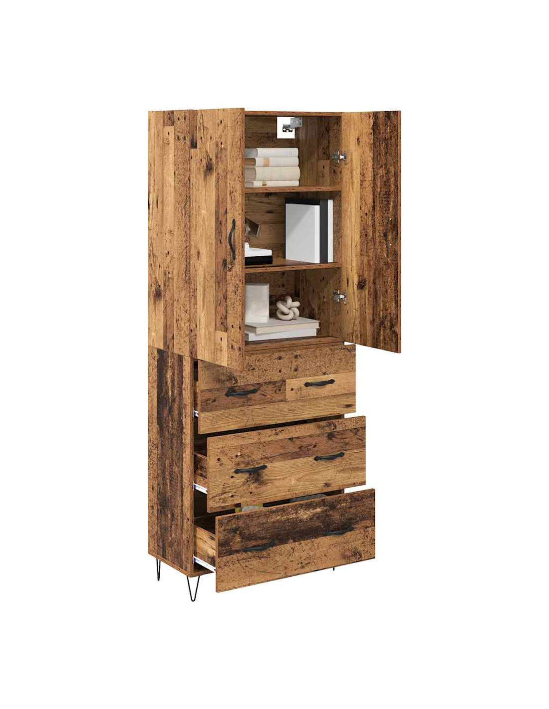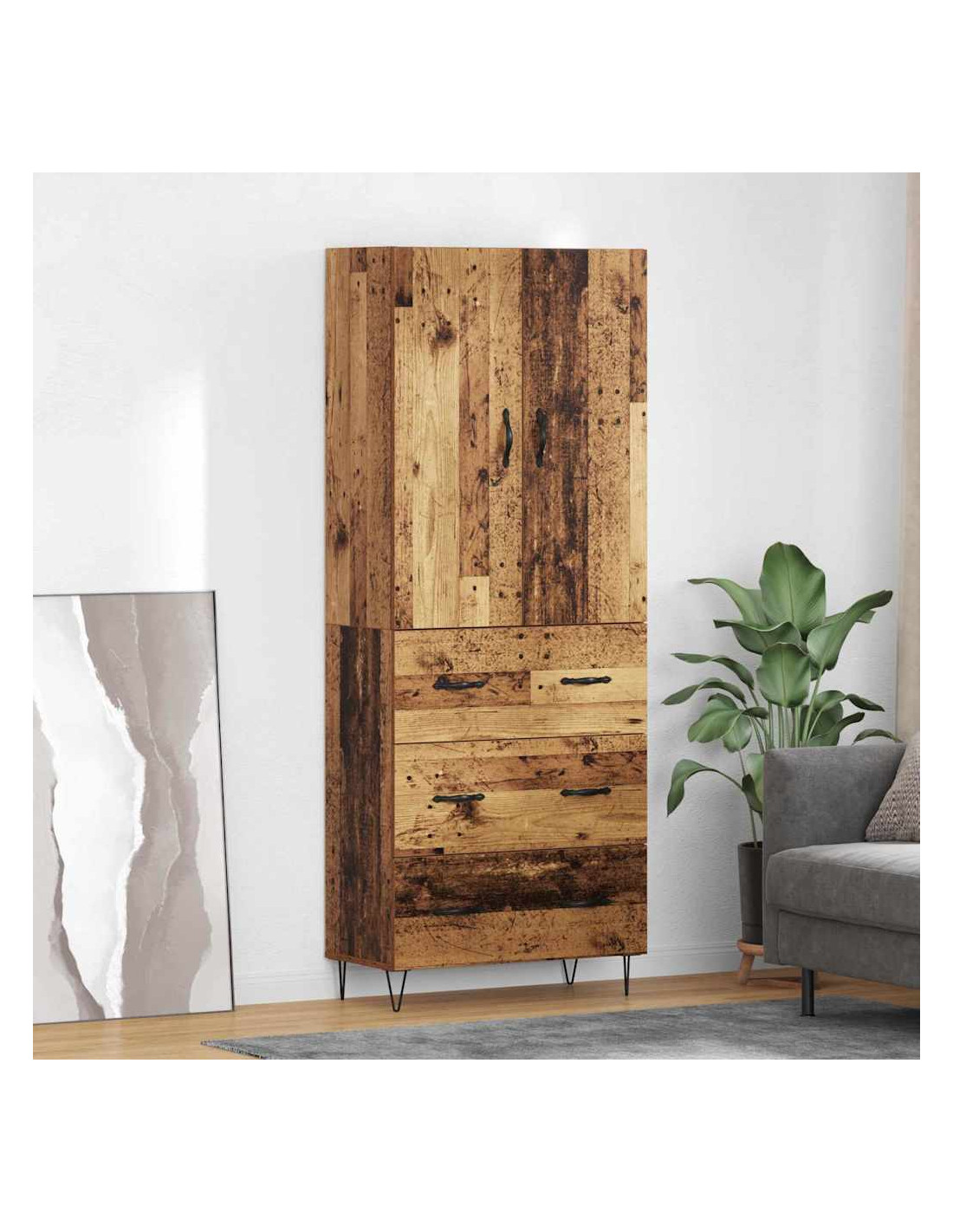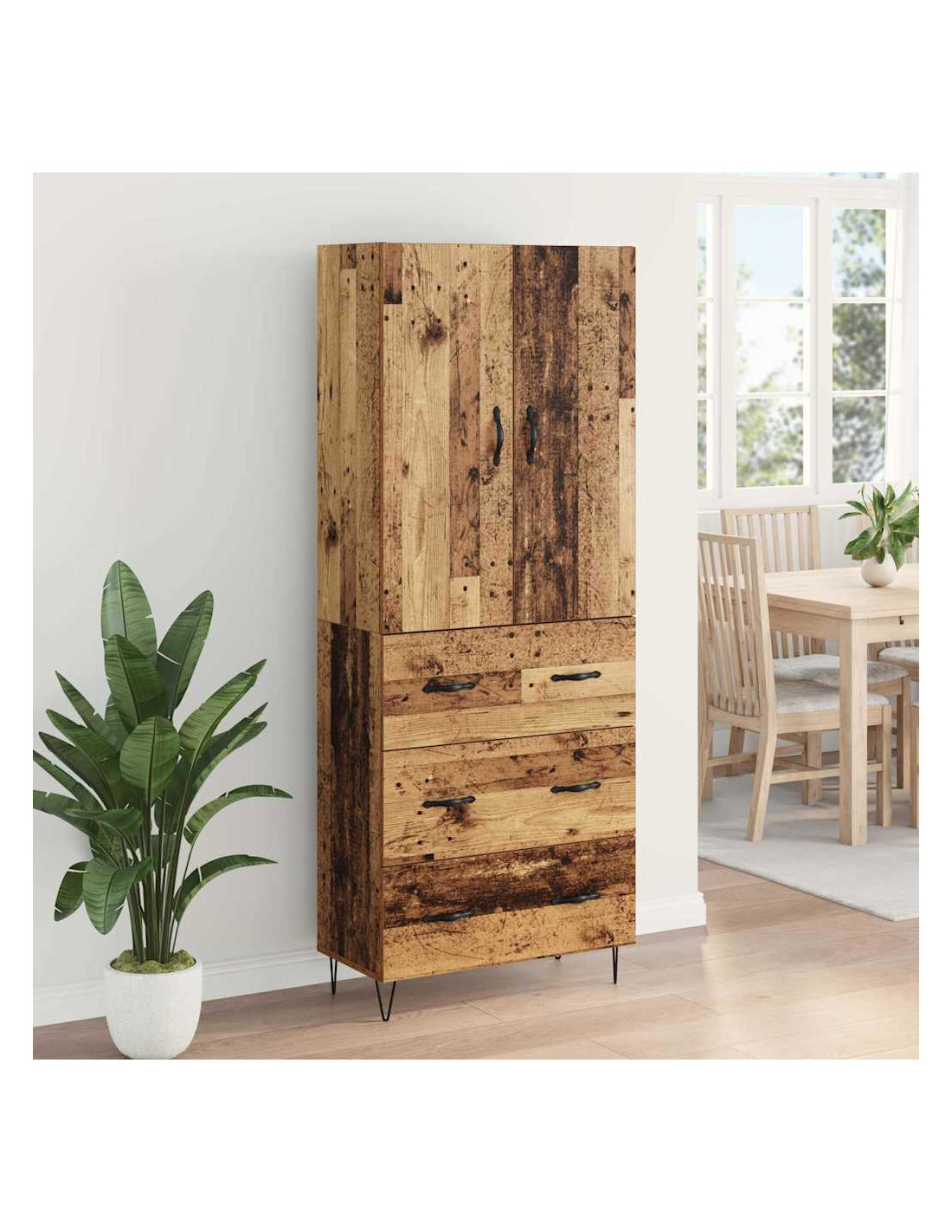 - Costruzione in legno ingegnerizzato: Questo highboard è fatto in legno ingegnerizzato resistente, robusto e duraturo, ideale per l'uso quotidiano senza segni di usura. La sua struttura solide offre una base sicura per tutte le tue esigenze di stoccaggio.