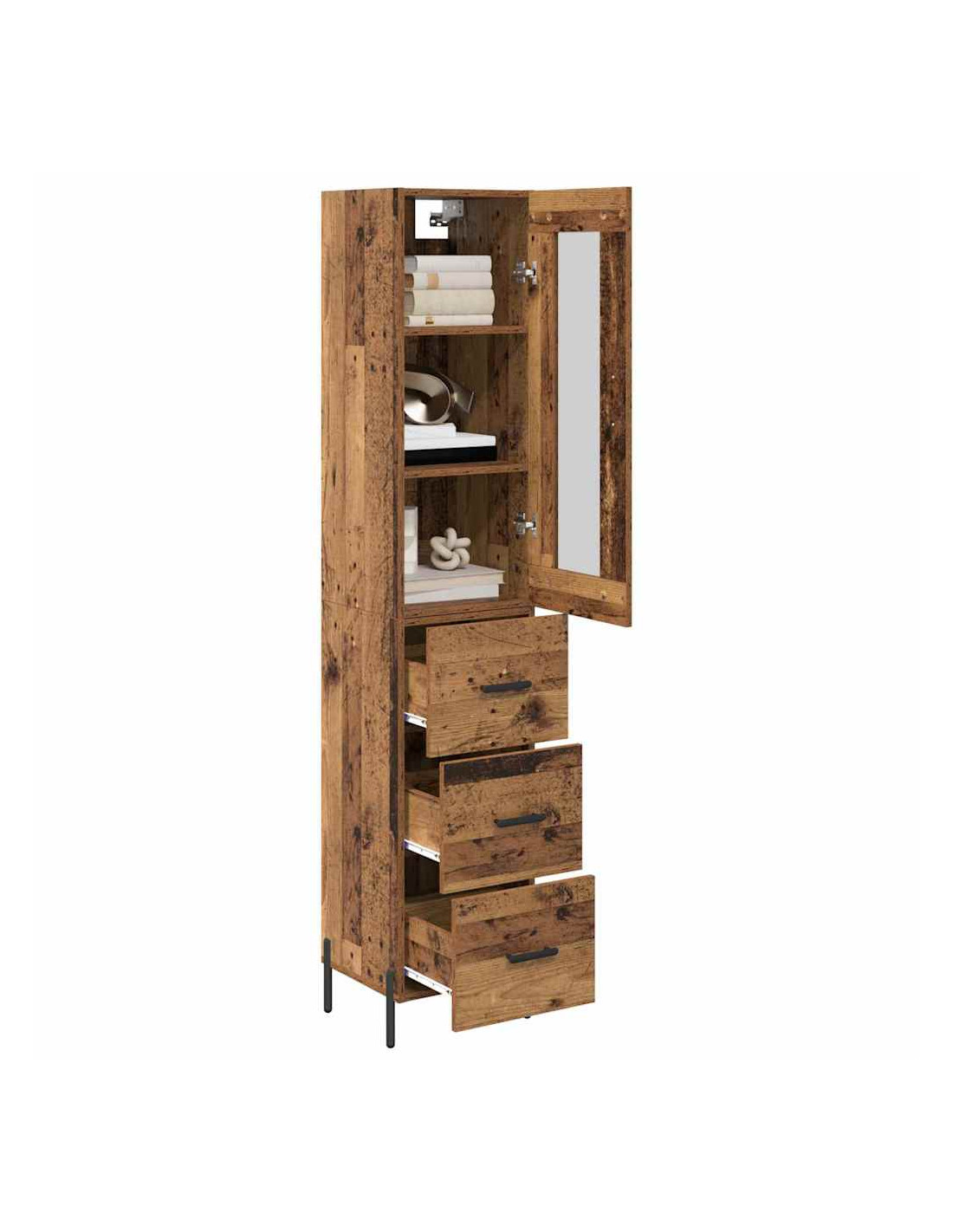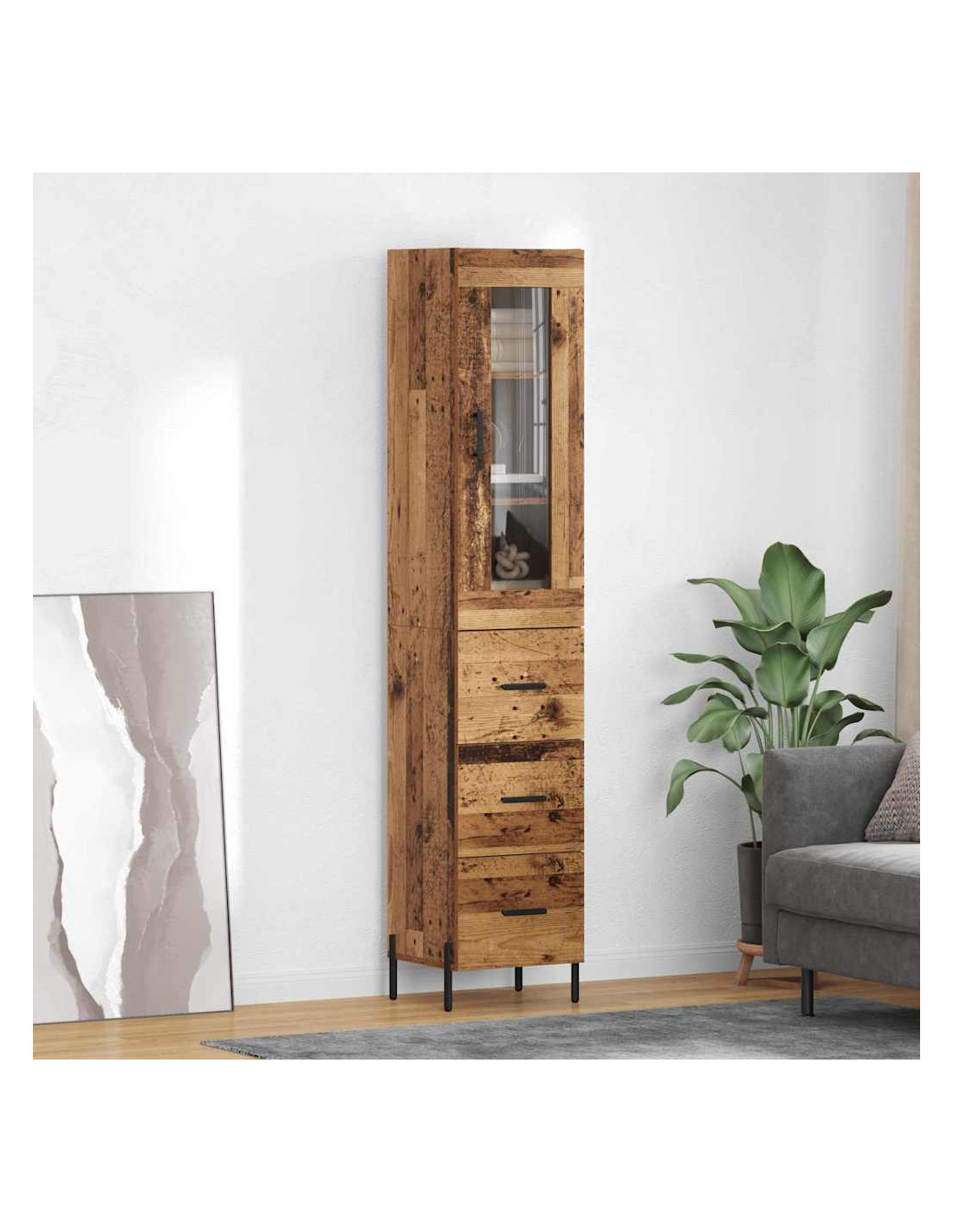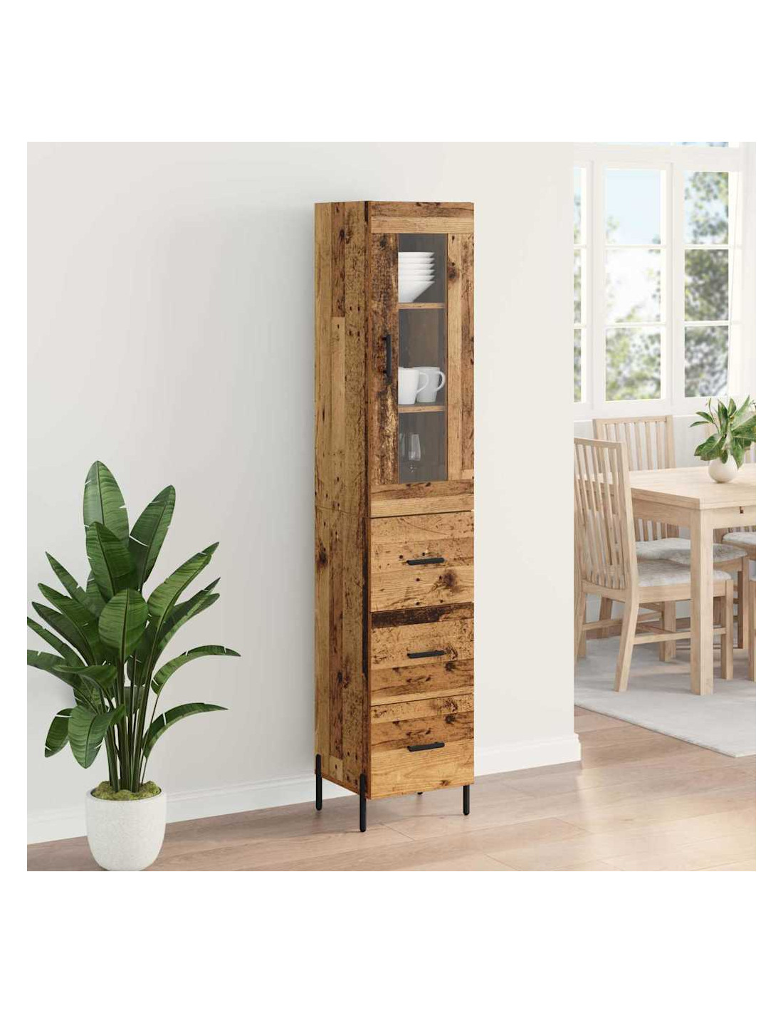- Materiali: Fatto in legno ingegnerizzato di qualità, il Wooden Highboard è robusto e ha un aspetto lucido. Questo materiale dura nel tempo, andando a braccetto con il look moderno di ogni spazio.