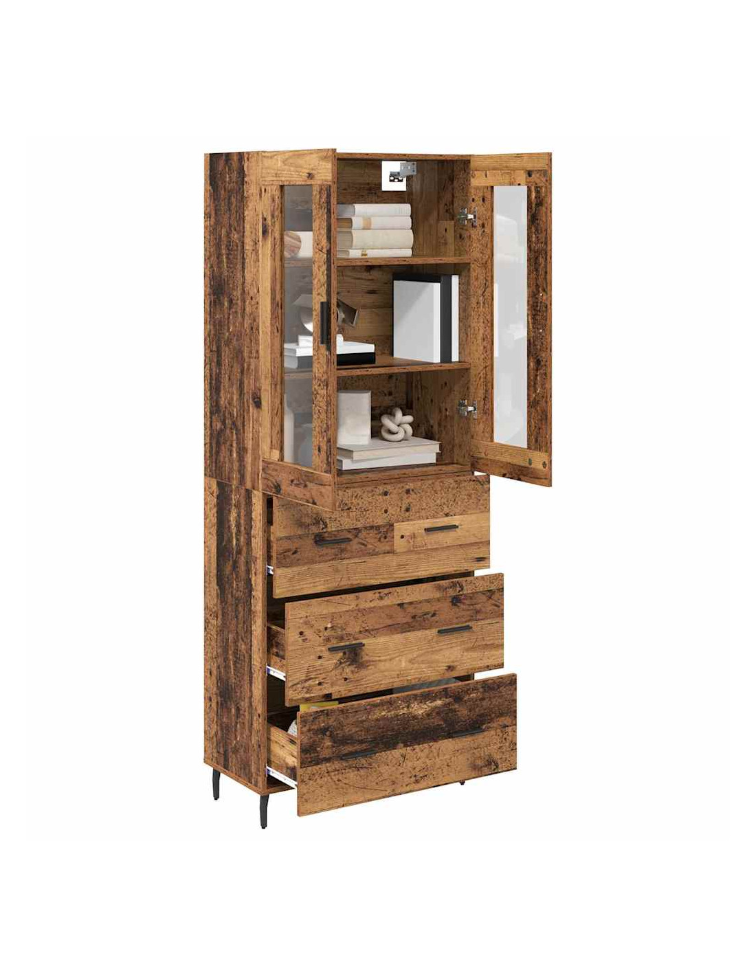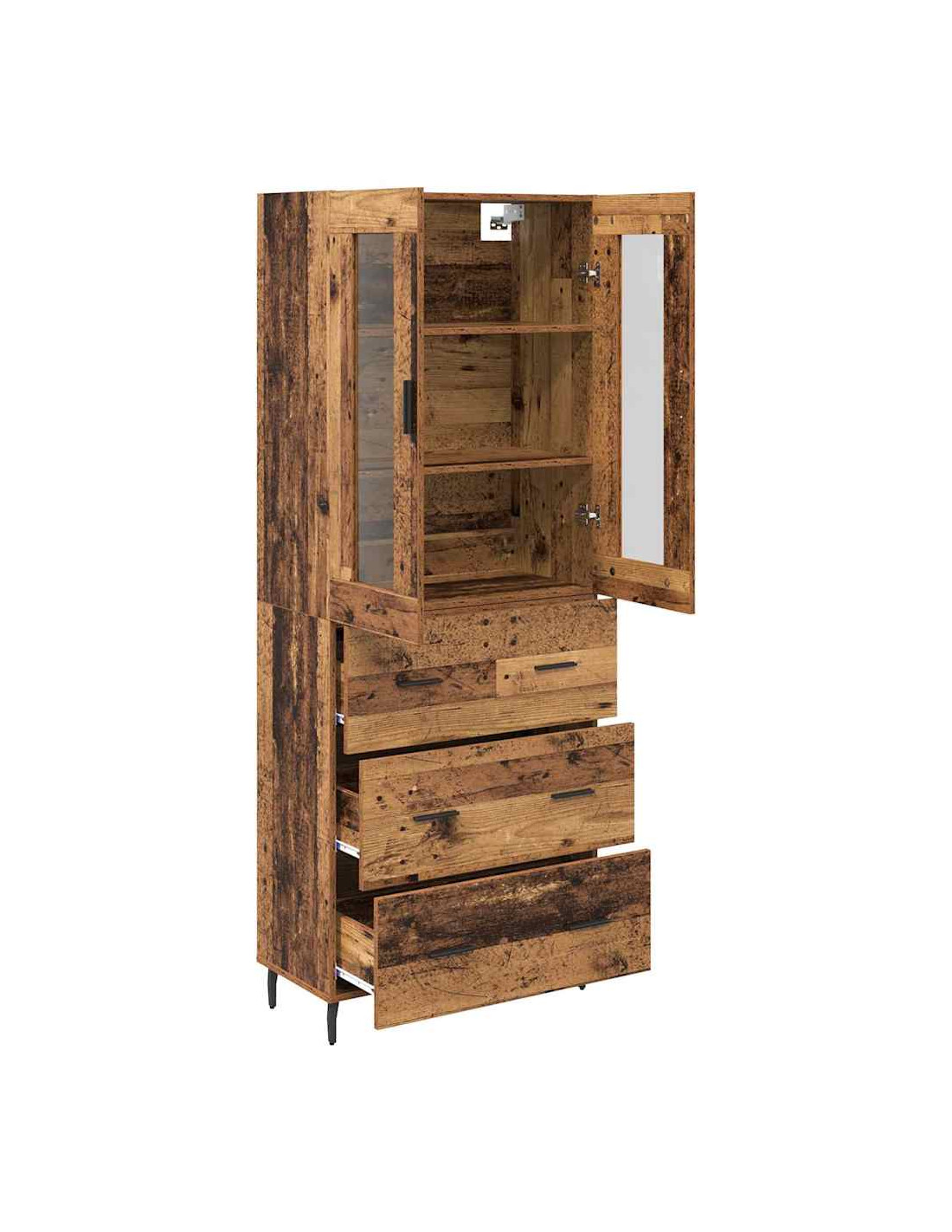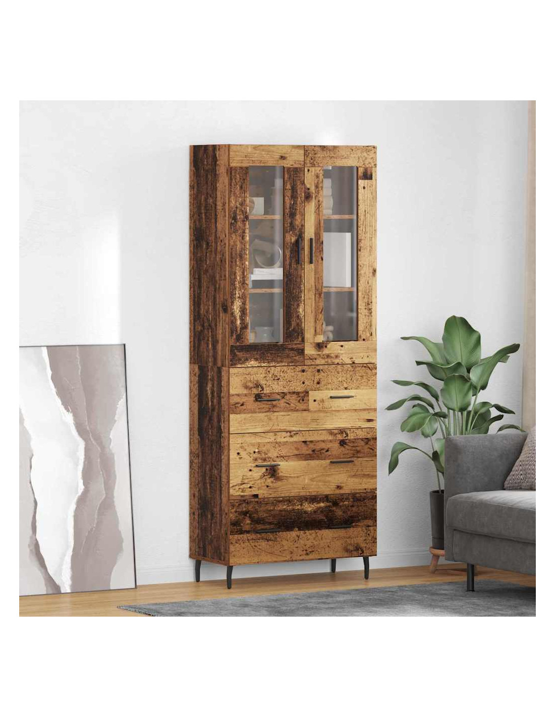 - Componenti funzionali: Con gambe in ferro slanciate e maniglie a barra, l'highboard è stabile e facile da usare. Le porte a cerniera e i ripiani organizzano gli oggetti in un modo che è semplice e veloce da accedere.