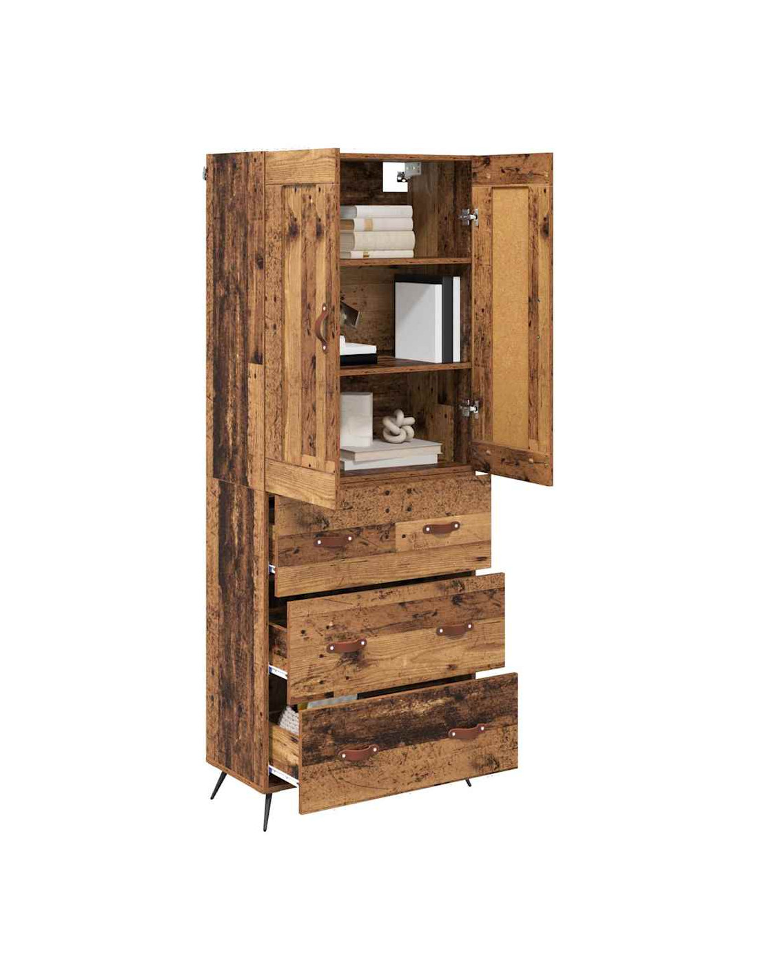 - Linee guida per la cura: Mantenere l'aspetto di questo highboard è semplice. Puliscilo con un panno asciutto per rimuovere la polvere e evita prodotti chimici aggressivi. Per sicurezza, fissalo al muro, è particolarmente importante in case con bambini.