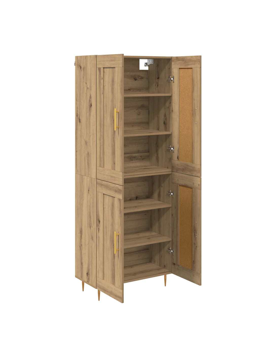 - Porte a cerniera versatili Le porte a cerniera in legno ingegnerizzato permettono un accesso facile ai tuoi oggetti, proteggendoli dalla polvere. Questo design massimizza lo spazio, mantenendo un aspetto elegante anche quando le porte sono chiuse.