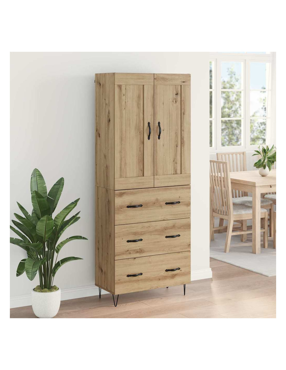 Questo Modern Highboard è un'aggiunta fantastica per qualsiasi sala da pranzo, che offre sia stile che usabilità grazie al suo design moderno. Può diventare facilmente il centro dell'attenzione nel tuo spazio, con le sue linee semplici e la sua funzionalità. Che tu voglia esporre bicchieri, tenere in ordine set da cena o riporre biancheria, questo sideboard presenta il tutto con un look chic e organizzato. L'estetica moderna di questo highboard lo rende facilmente abbinabile a qualsiasi decorazione, aggiungendo un tocco di eleganza alla tua casa.