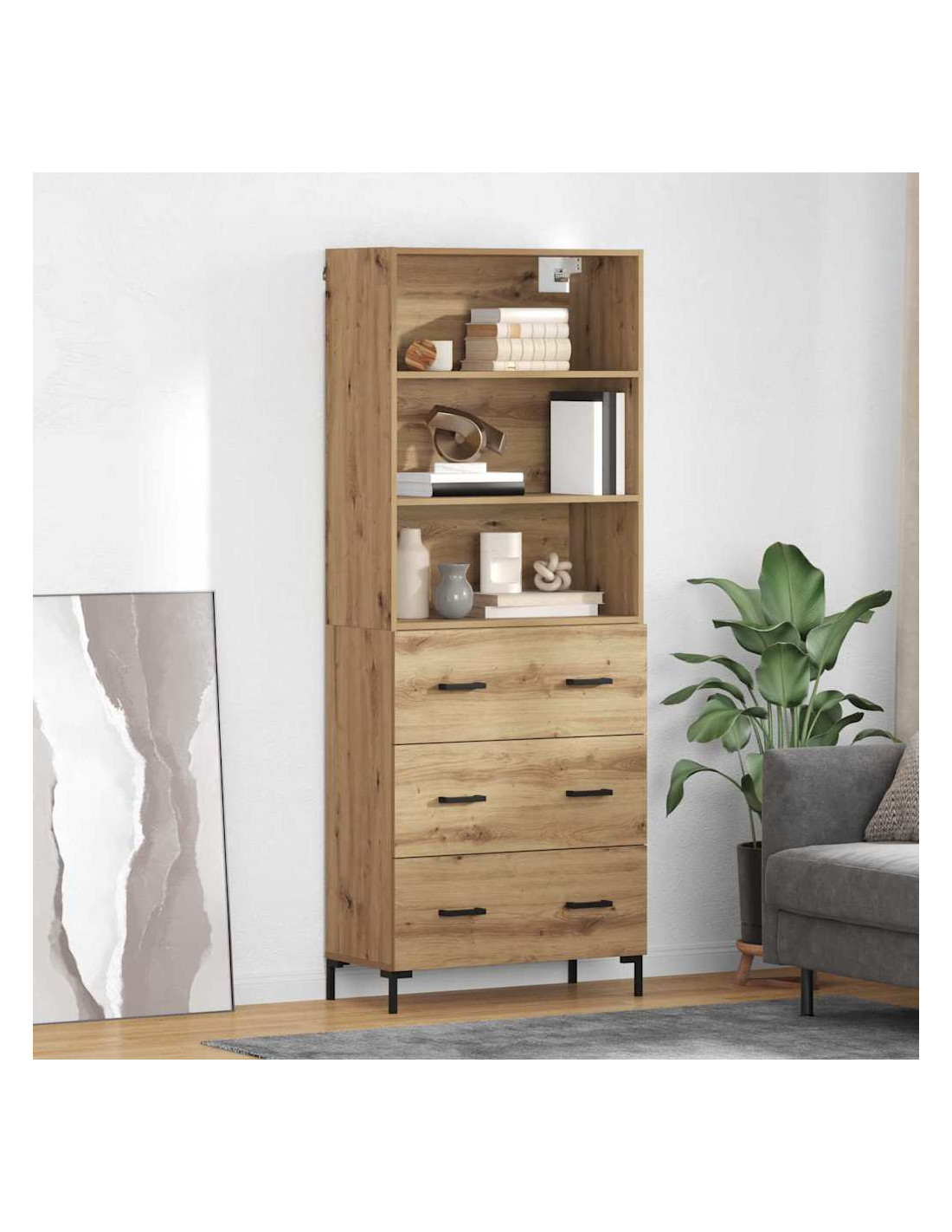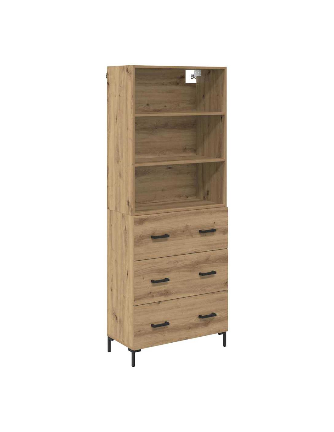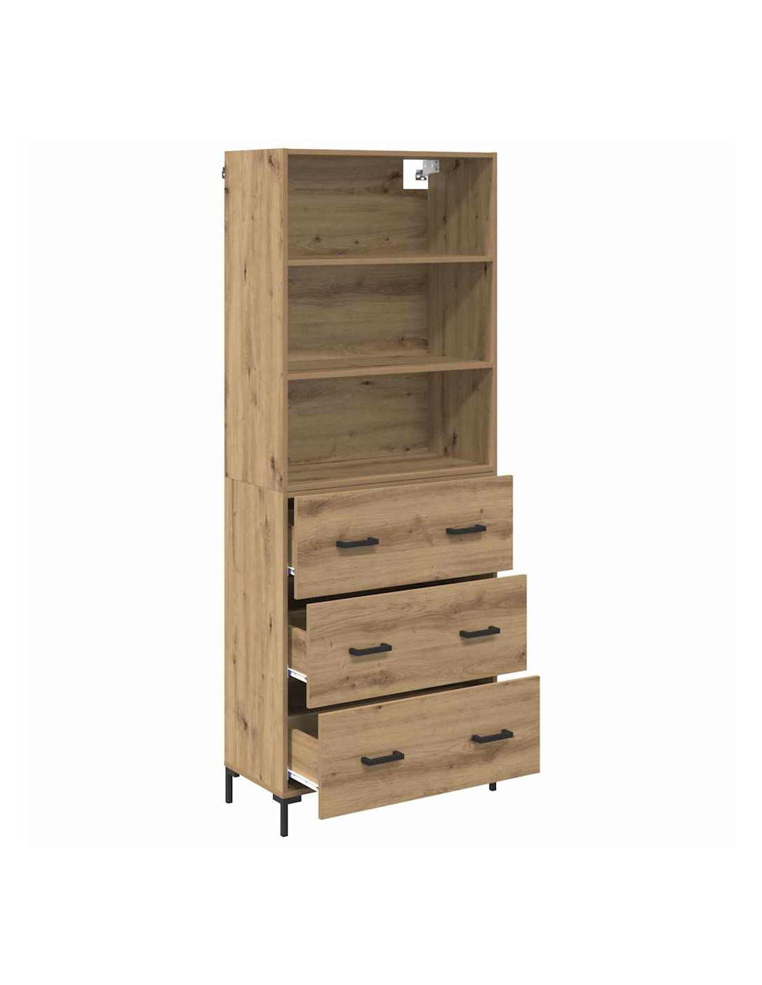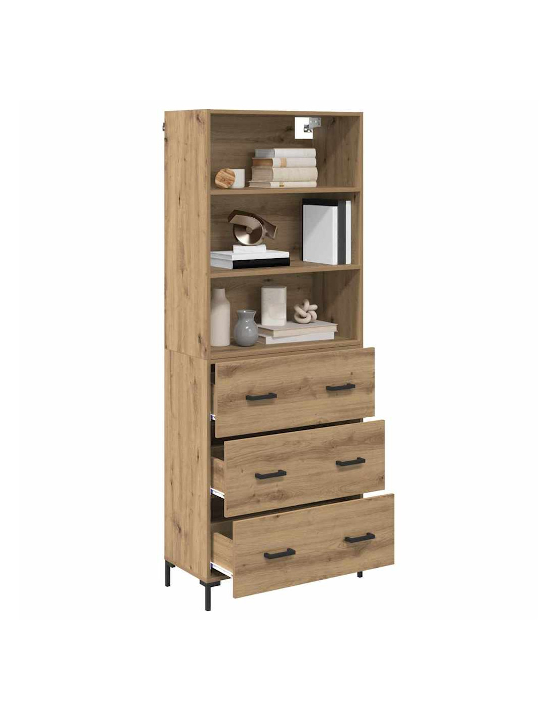 Questa credenza alta moderna è un pezzo chic per lo stoccaggio, perfetta per sale da pranzo o salotto contemporanei. La sua forma pulita e rettangolare è una combinazione armoniosa di stile e funzionalità, ideale per chi ama il minimalismo con un tocco di eleganza. Il suo aspetto semplice e raffinato non sovrasta gli ambienti, anzi li esalta. Con il calore del legno ingegnerizzato, stabilisce un'atmosfera elegante e ordinata, dove design e funzionalità si uniscono per accontentare anche i più esigenti.