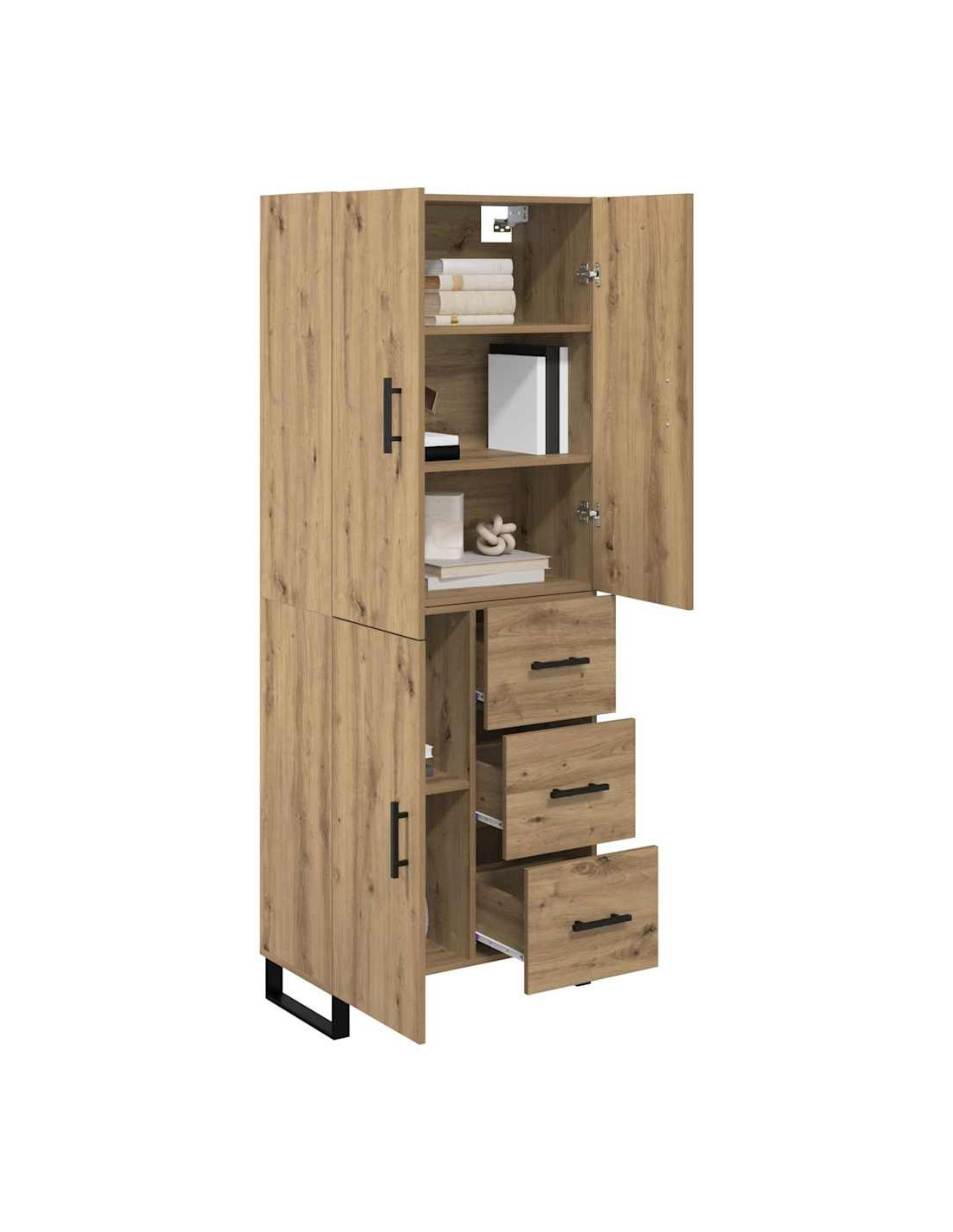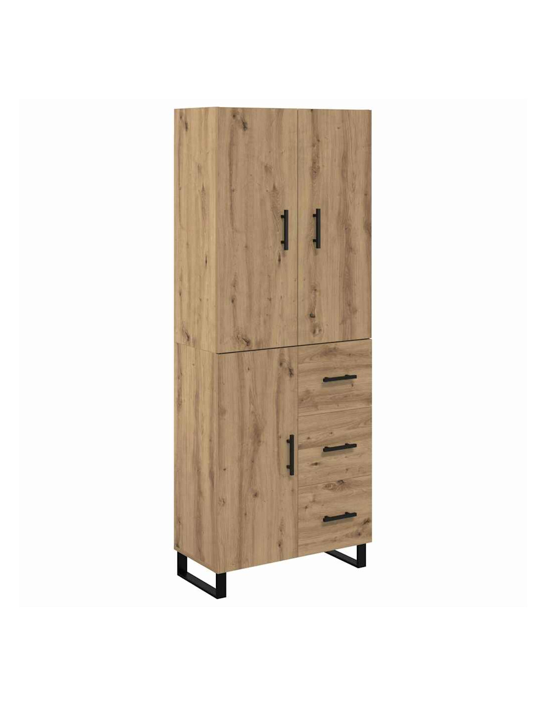 - Mensole versatili: Le mensole sono fatte dello stesso legno ingegnerizzato e offrono una soluzione semplice e sicura per riporre libri, decorazioni o stoviglie. Questa flessibilità rende l'highboard utile per ogni occasione, sia per una cena che per tenere in ordine i tuoi oggetti quotidiani.