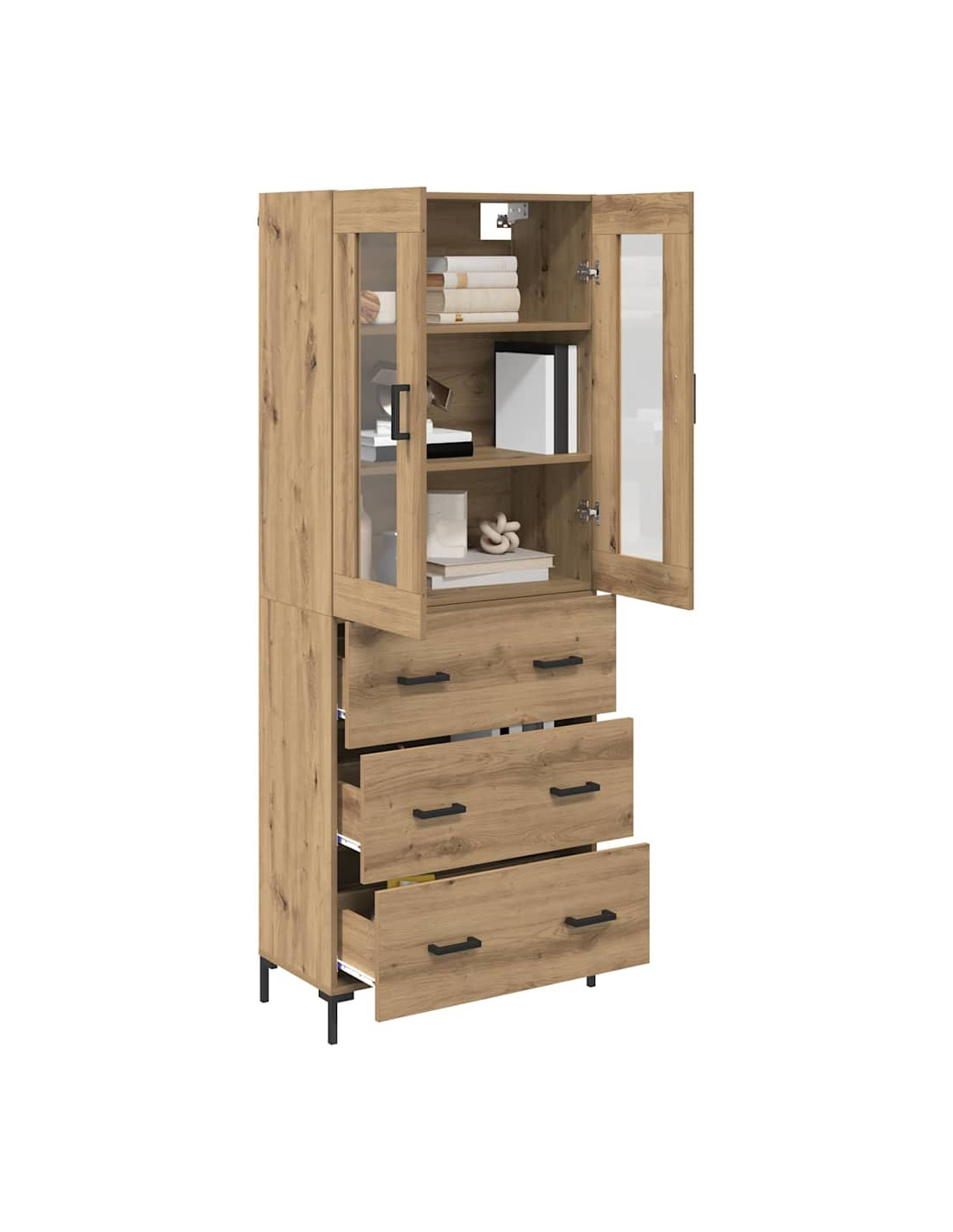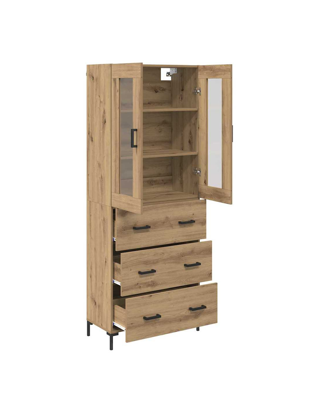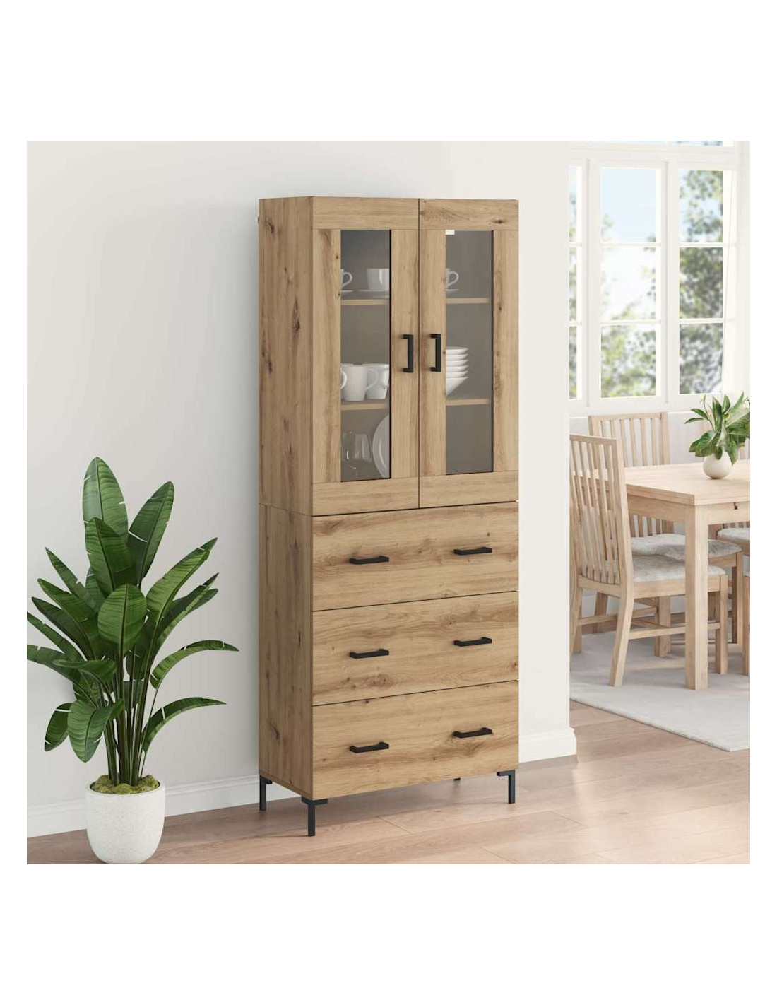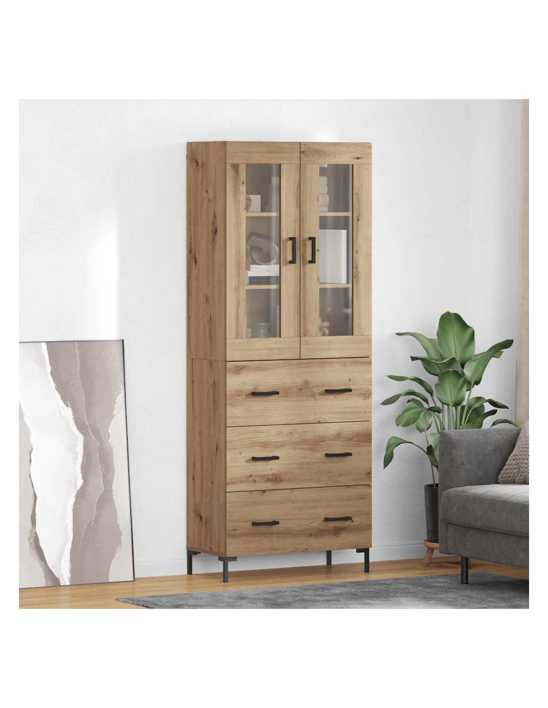 - Stoccaggio adattabile: Con ampio spazio, questo highboard soddisfa varie esigenze di organizzazione. Che si tratti di libri, collezioni o oggetti quotidiani, i compartimenti si adattano ai tuoi bisogni, mantenendo tutto in ordine.