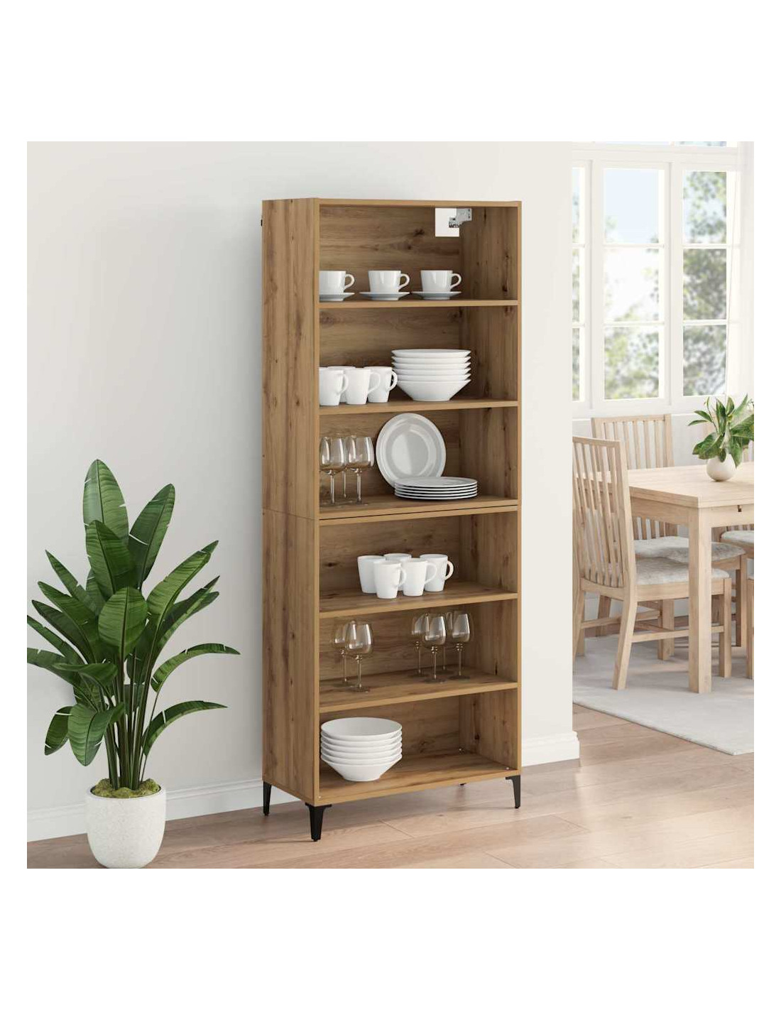 - Struttura in legno ingegnerizzato Questo highboard è fatto di legno ingegnerizzato resistente, perfetto contro i graffi e l'usura. Offre prestazioni durature e un aspetto sempre impeccabile, unendo eleganza e funzionalità.
