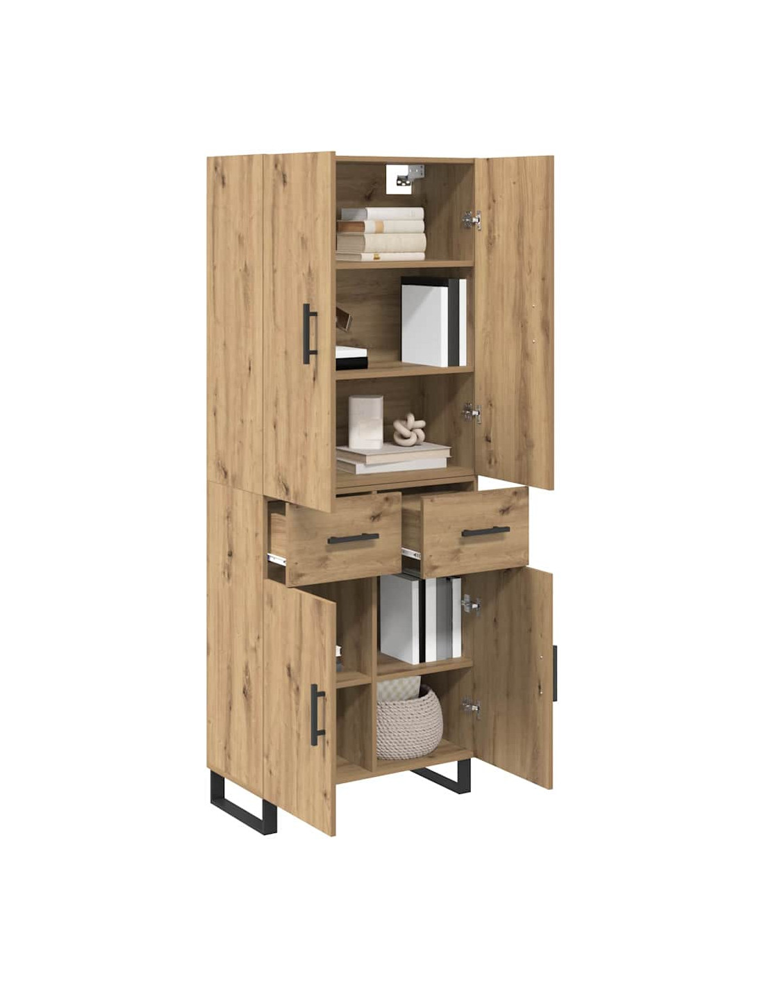 - Mensole versatili: Le mensole sono fatte dello stesso legno ingegnerizzato e offrono una soluzione semplice e sicura per riporre libri, decorazioni o stoviglie. Questa flessibilità rende l'highboard utile per ogni occasione, sia per una cena che per tenere in ordine i tuoi oggetti quotidiani.