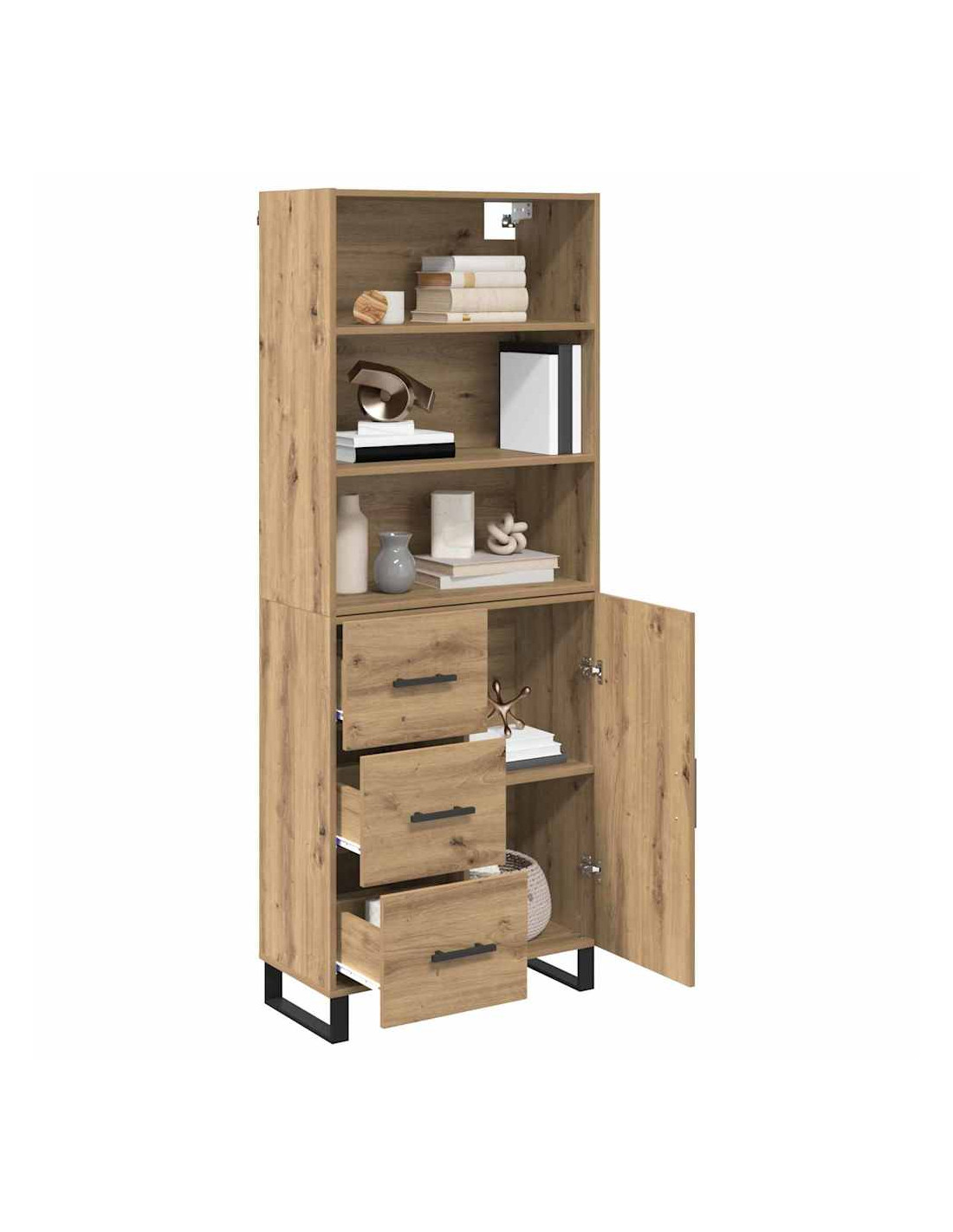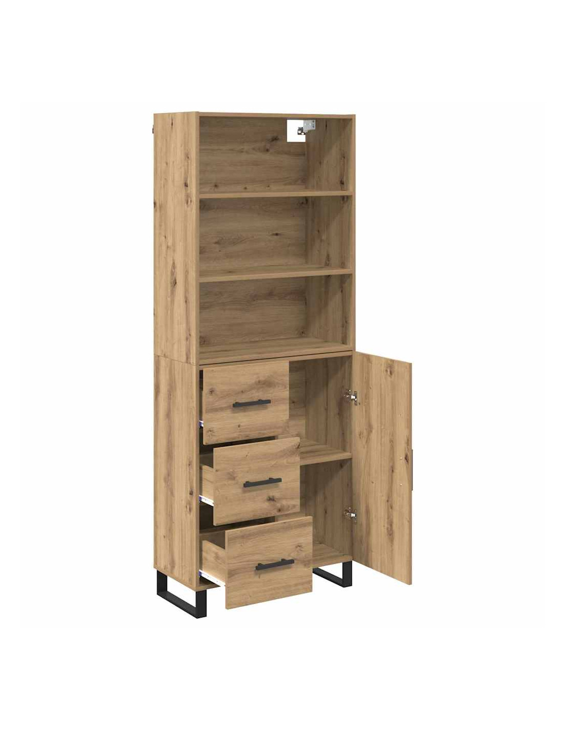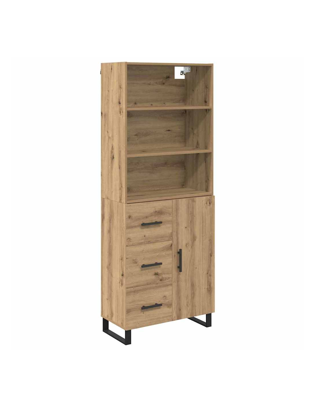 - Piedi moderni e eleganti L'highboard ha robusti piedi in metallo nero con un design a gamba quadrata. Questi piedi non solo aggiungono un tocco moderno, ma forniscono anche stabilità su vari tipi di pavimento.