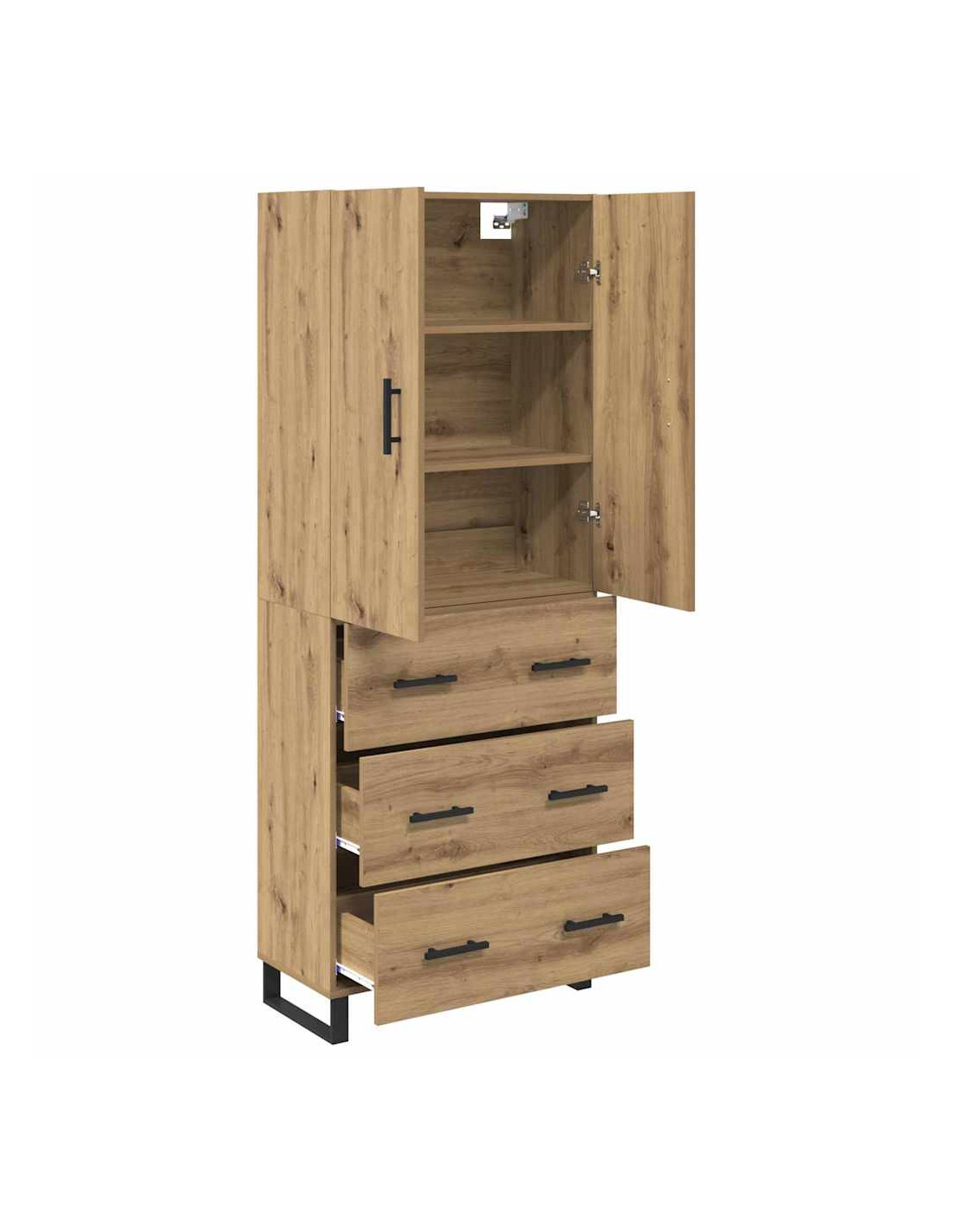 - Mensole versatili: Le mensole sono fatte dello stesso legno ingegnerizzato e offrono una soluzione semplice e sicura per riporre libri, decorazioni o stoviglie. Questa flessibilità rende l'highboard utile per ogni occasione, sia per una cena che per tenere in ordine i tuoi oggetti quotidiani.