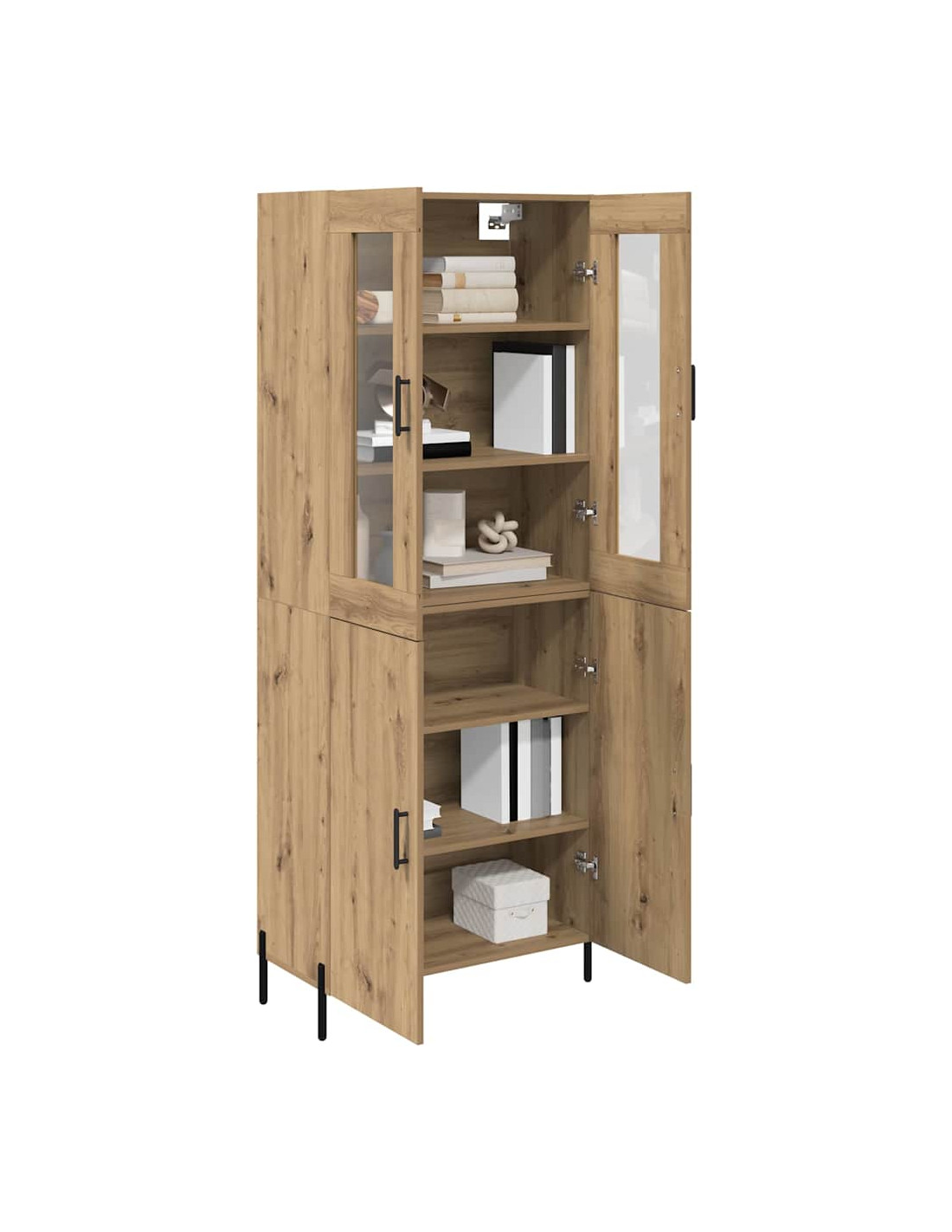 - Costruzione in legno ingegnerizzato: Questo armadietto è fatto di legno ingegnerizzato, resistente al calore e durevole, il che lo rende un'ottima scelta per un utilizzo prolungato. Il materiale non solo è robusto, ma ha anche una finitura elegante che arricchisce il look moderno dell'armadietto.