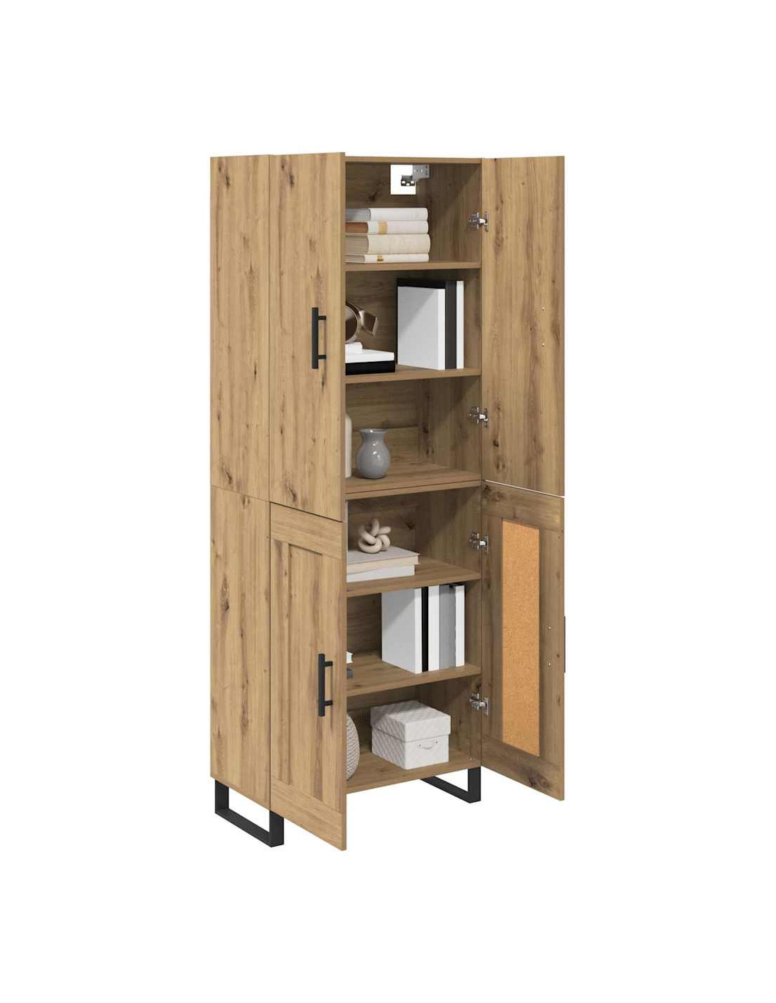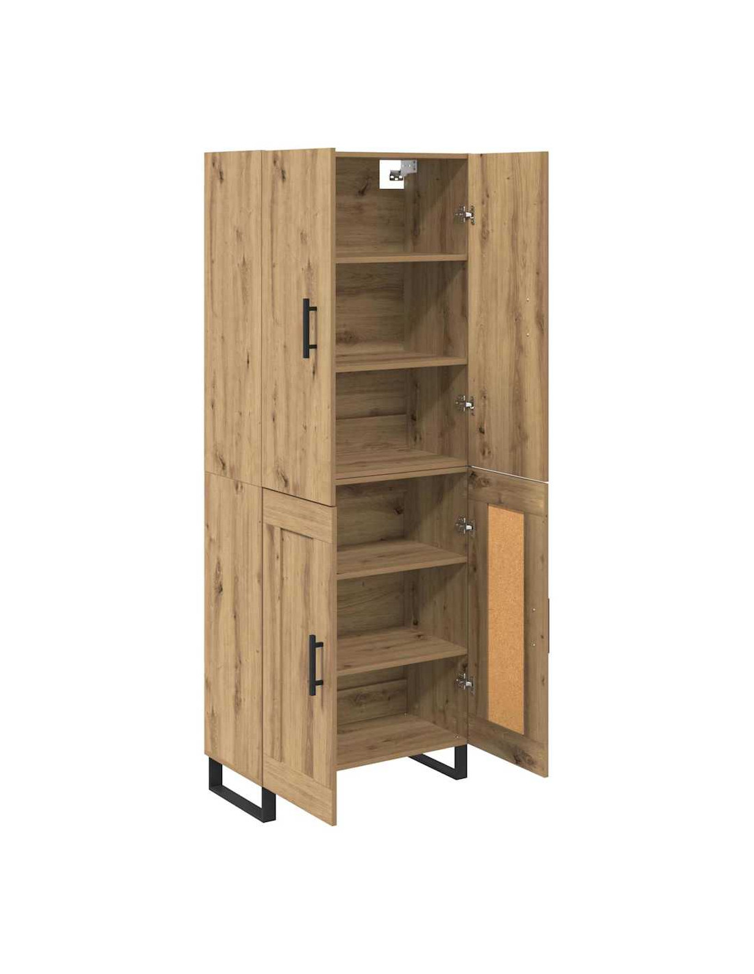 - Mensole versatili: Le mensole sono fatte dello stesso legno ingegnerizzato e offrono una soluzione semplice e sicura per riporre libri, decorazioni o stoviglie. Questa flessibilità rende l'highboard utile per ogni occasione, sia per una cena che per tenere in ordine i tuoi oggetti quotidiani.