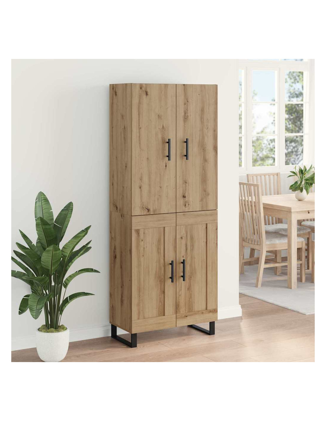 - Legno ingegnerizzato: Questo highboard è realizzato in legno ingegnerizzato, noto per essere resistente e capace di affrontare l'uso quotidiano. La finitura liscia e moderna aggiunge un tocco contemporaneo a qualsiasi stanza. È resistente ai graffi e resta in ottime condizioni anche dopo tanto uso, quindi è perfetto per famiglie impegnate.