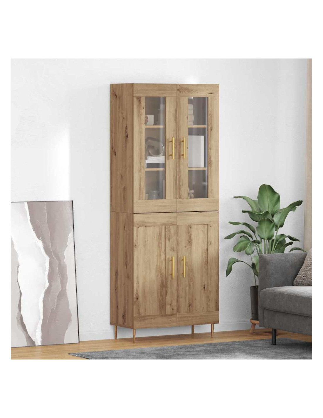 - Usi Consigliati: Questo highboard è perfetto per qualsiasi soggiorno, ideale per esposizioni di collezioni o per tenere in ordine gli oggetti quotidiani. La sua struttura alta e snella lo rende perfetto per sfruttare lo spazio verticale, utile sia per appartamenti compatti che per case spaziose.