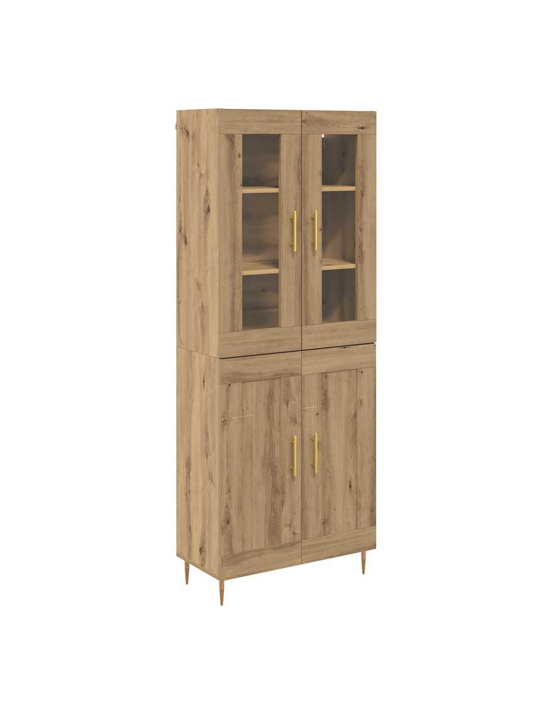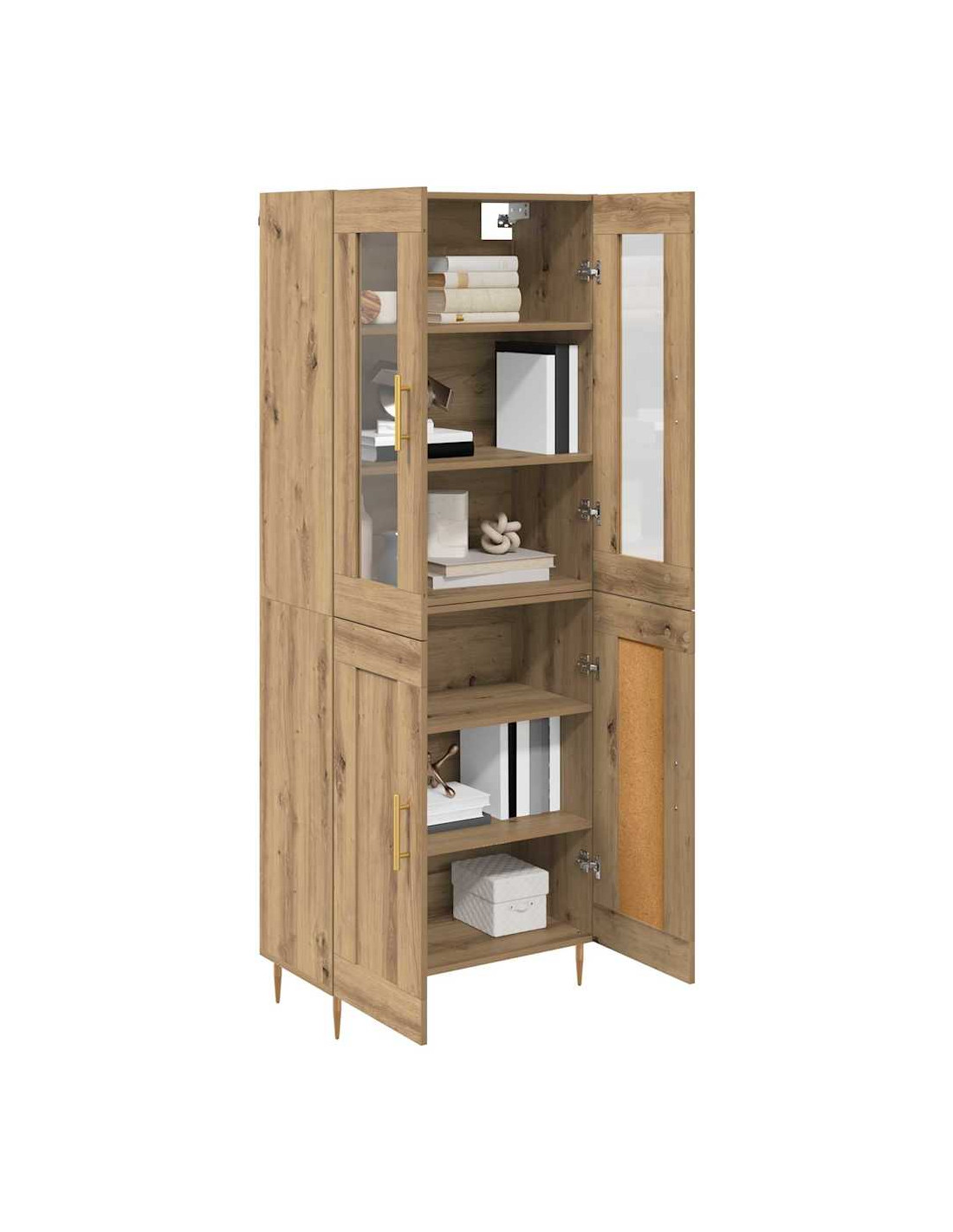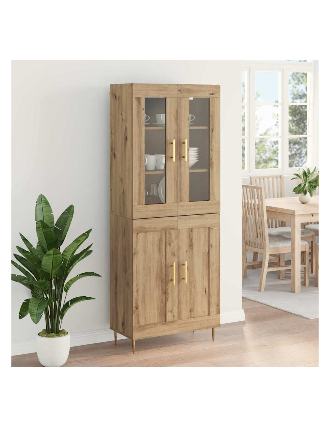 - Materiali: Questo highboard in legno ingegnerizzato ha una base resistente. Il vetro aggiunge un tocco chic, rendendolo non solo bello ma anche pratico per accedere a ciò che contiene. Questi materiali collaborano per creare un pezzo solido e attraente, ideale per le tue necessità di stoccaggio.