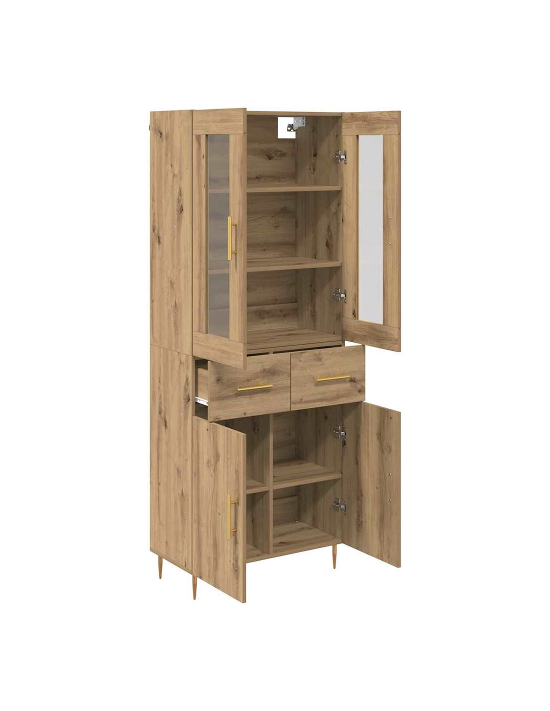 - Materiali: Questo highboard in legno ingegnerizzato ha una base resistente. Il vetro aggiunge un tocco chic, rendendolo non solo bello ma anche pratico per accedere a ciò che contiene. Questi materiali collaborano per creare un pezzo solido e attraente, ideale per le tue necessità di stoccaggio.