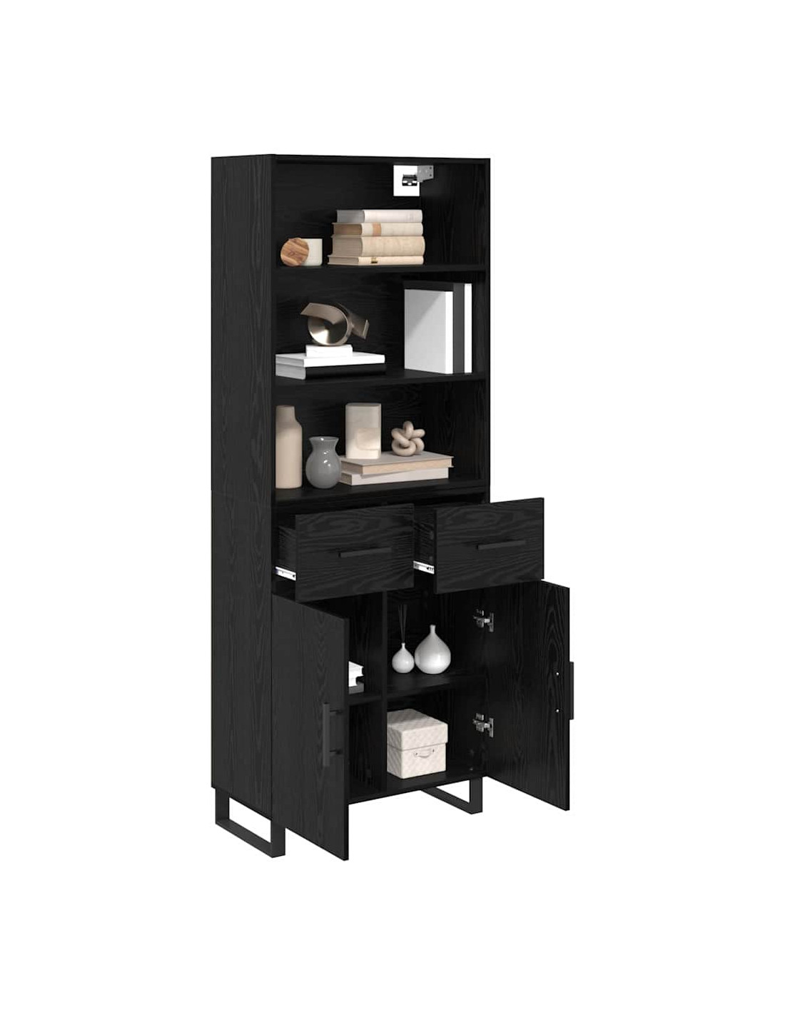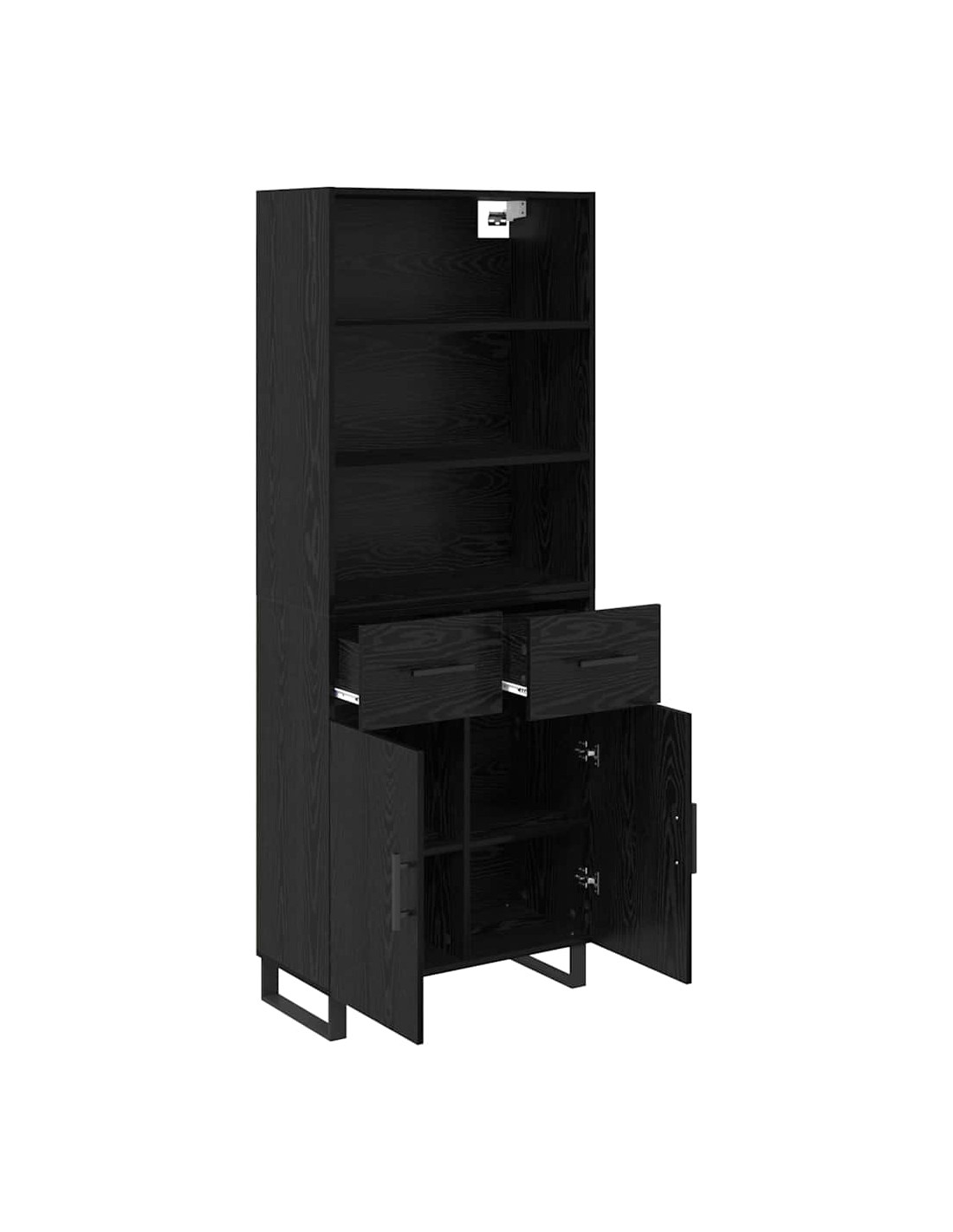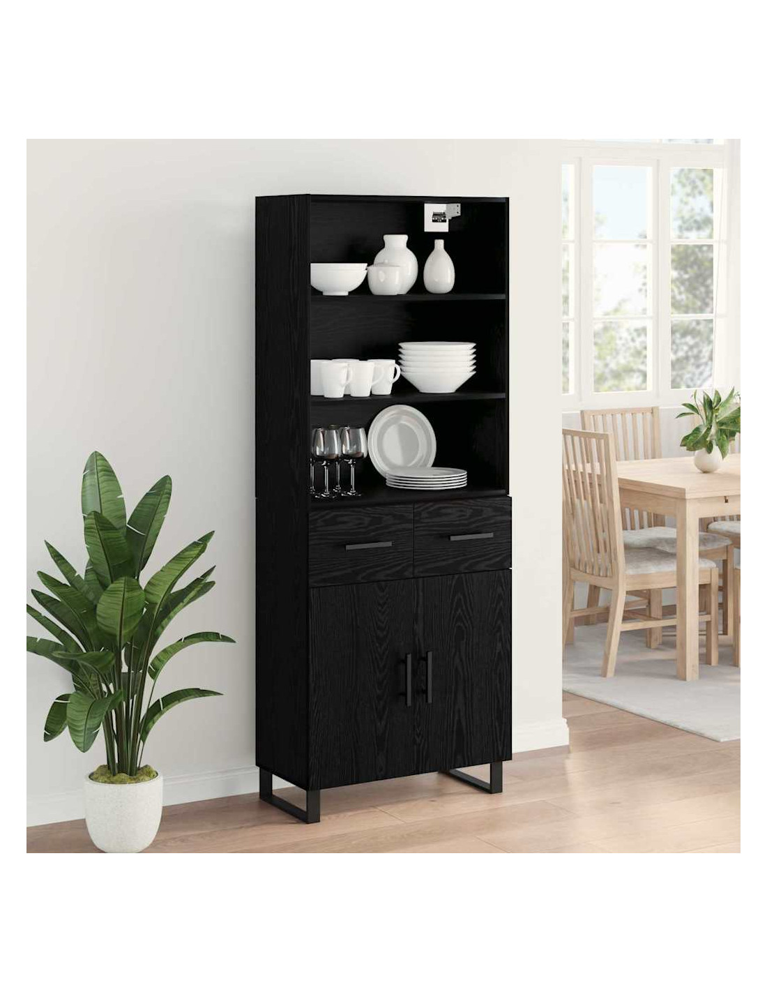 - Piedi moderni e eleganti L'highboard ha robusti piedi in metallo nero con un design a gamba quadrata. Questi piedi non solo aggiungono un tocco moderno, ma forniscono anche stabilità su vari tipi di pavimento.