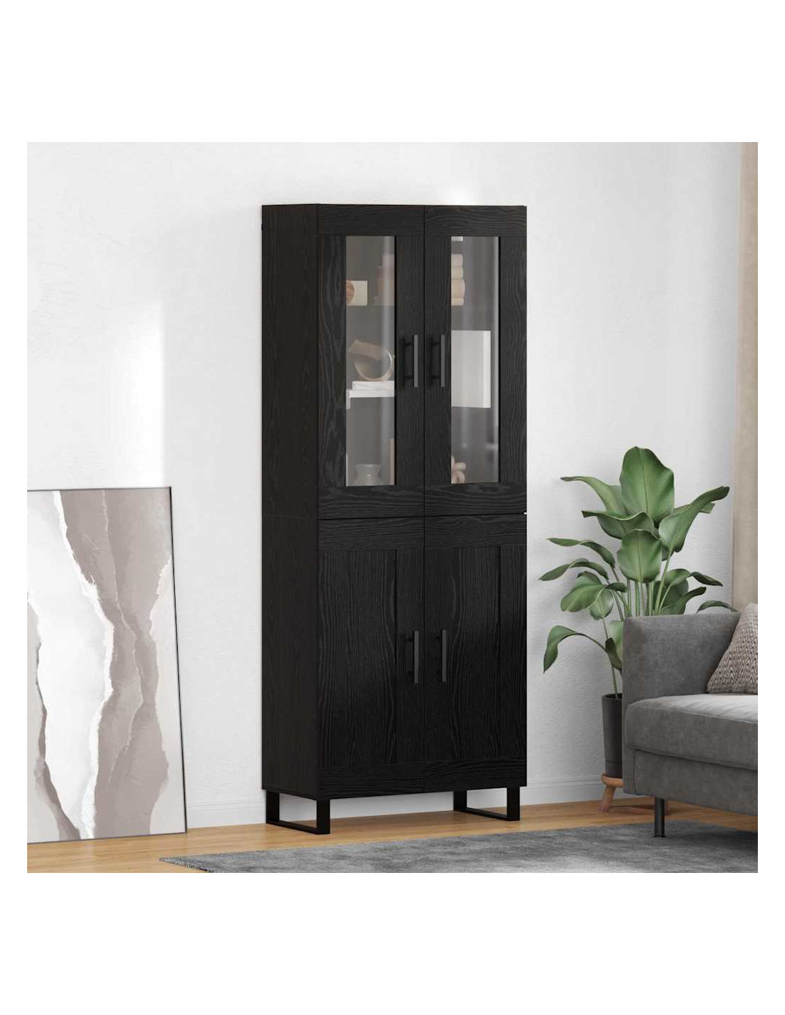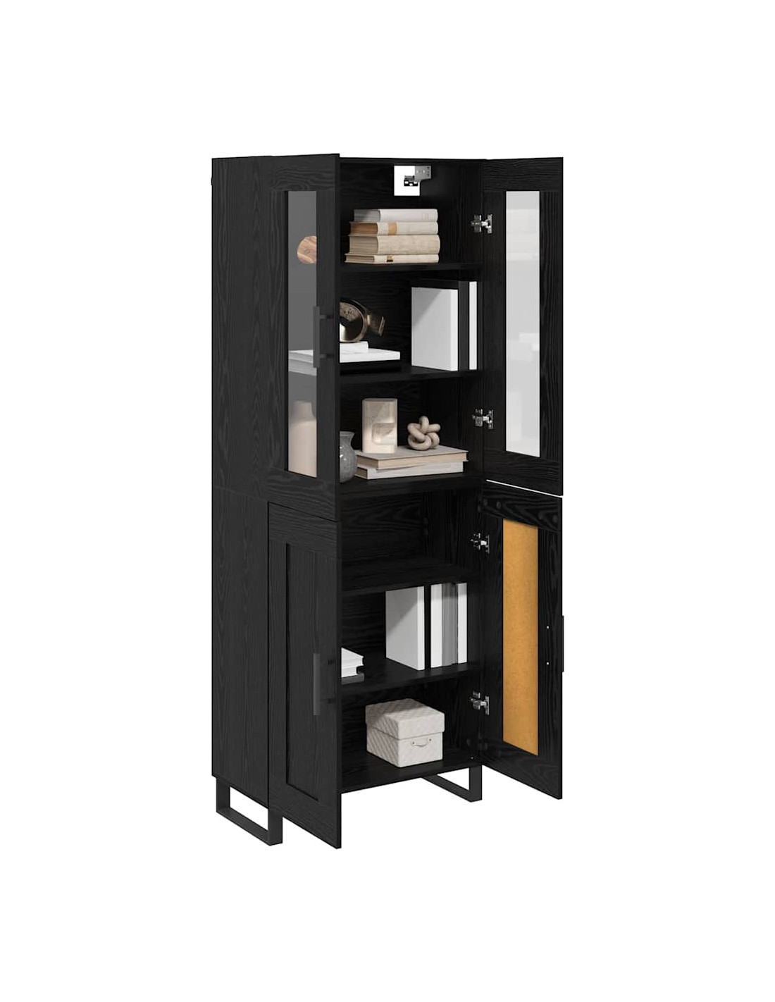 - Materiali: L'armadio è fatto di legno ingegnerizzato e vetro, dando un look elegante e pratico. I materiali scelti lo rendono resistente all'usura, quindi mantiene il suo fascino nel tempo e resiste all'uso quotidiano.