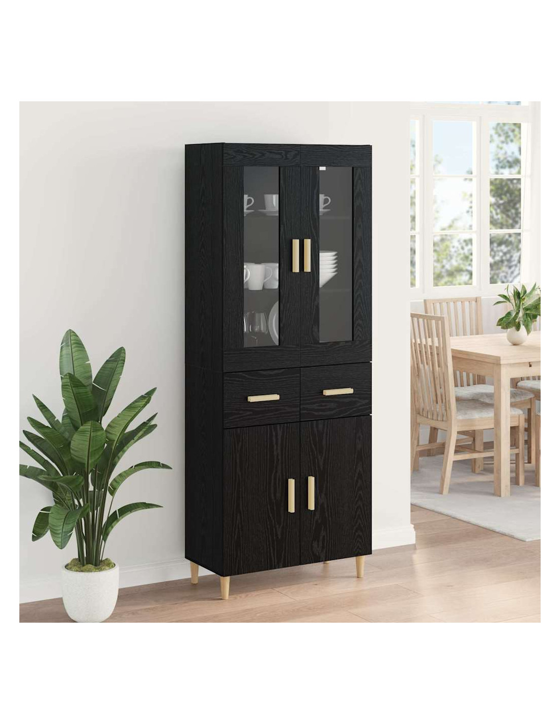 - Componenti Inclusi: Con porte a cerniera e ripiani per pannelli, l'highboard è progettato per l'organizzazione. I tiranti quadrati ne facilitano l'accesso e aggiungono un tocco di design geometrico. Questi elementi creano un'esperienza d'uso fluida, migliorando la funzionalità degli spazi contemporanei.