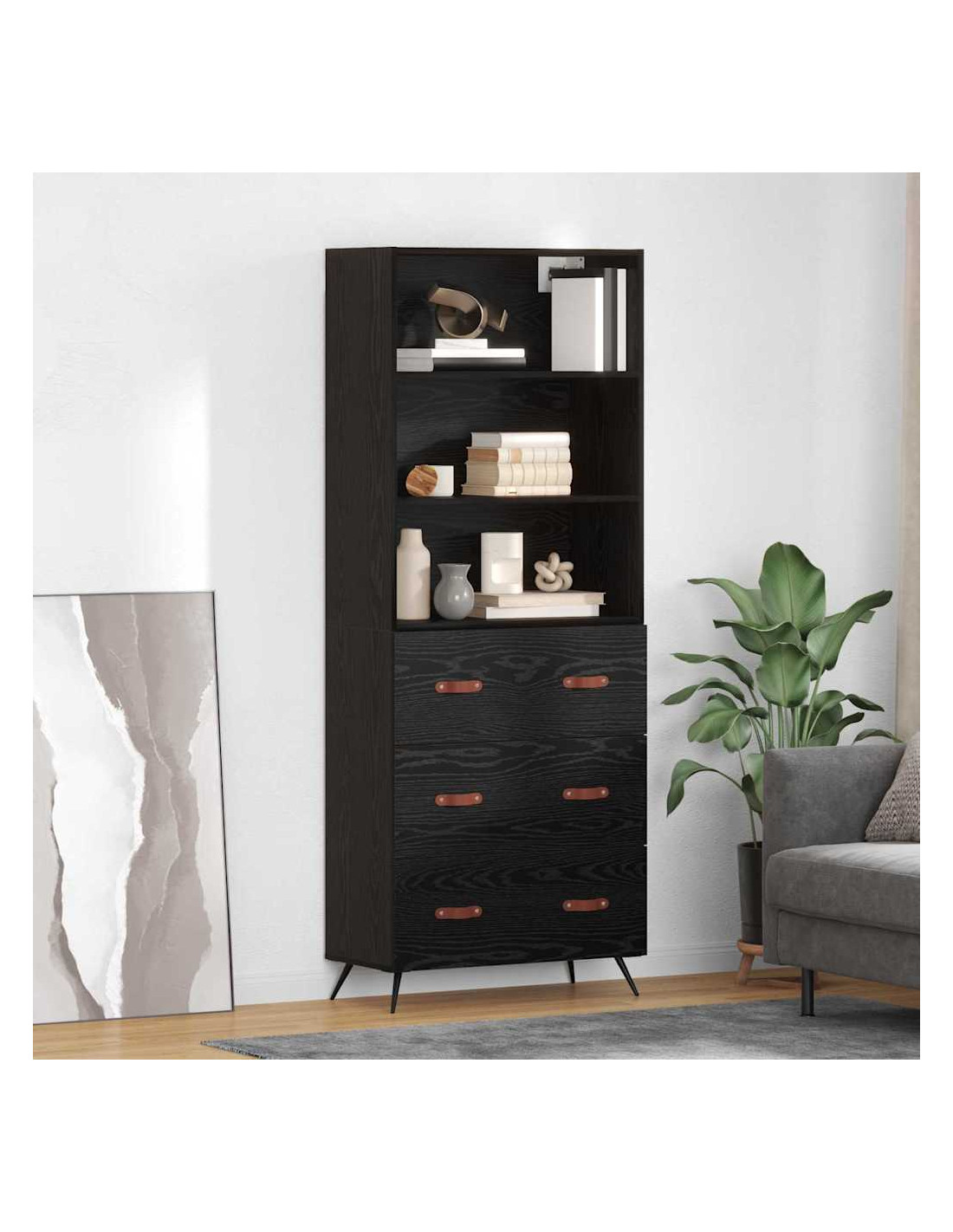 - Costruzione in legno ingegnerizzato: Questo highboard è fatto di legno ingegnerizzato, quindi è resistente e ha una bella finitura naturale. È un materiale che non solo è elegante ma resiste anche nel tempo, perfetto per gli interni.
