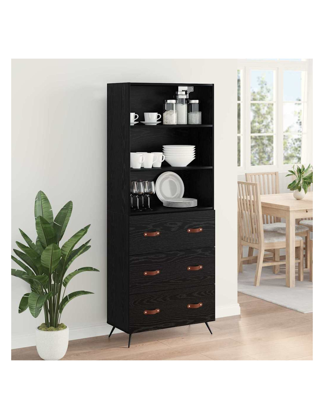 - Spazio di archiviazione ampio: Con tanto spazio a disposizione, questo highboard è la soluzione ideale per tenere in ordine gli accessori. Le sue mensole e cassetti sono versatili e si adattano a ogni esigenza, perfetti per bicchieri o per sistemare un po'di disordine.