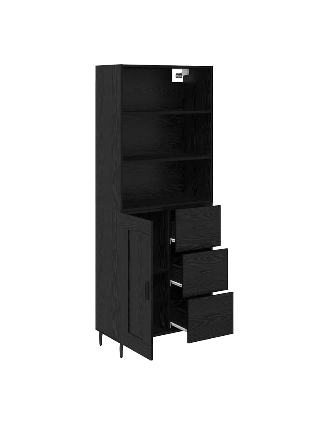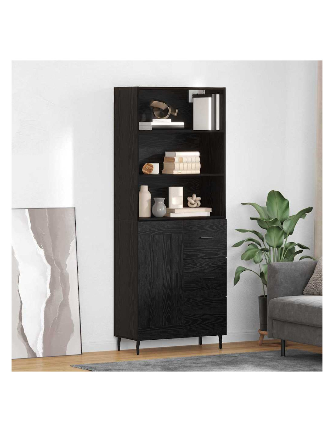 - Componenti inclusi: Include maniglie e gambe in ferro, garantendo forza e stabilità. Le mensole interne offrono molto spazio per oggetti vari, aumentando la praticità. Il retro è rifinito, permettendo all'unità di stare liberamente come divisore d'ambiente, se necessario.