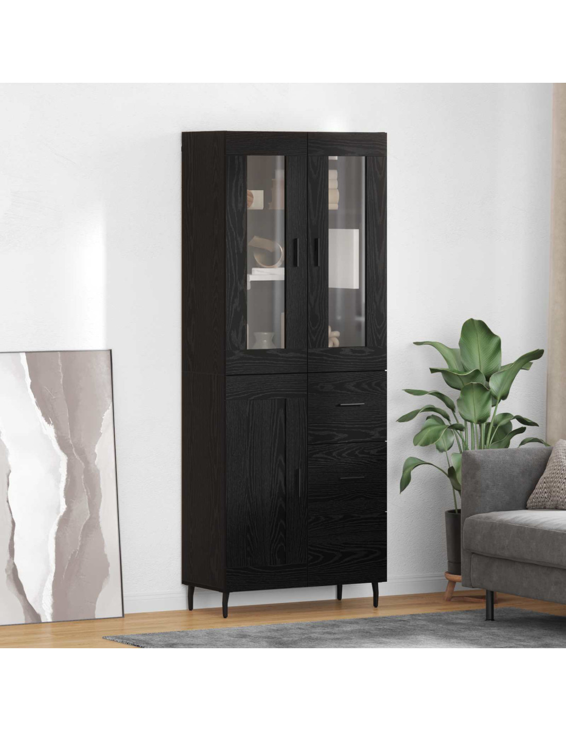 - Componenti funzionali: Con gambe in ferro slanciate e maniglie a barra, l'highboard è stabile e facile da usare. Le porte a cerniera e i ripiani organizzano gli oggetti in un modo che è semplice e veloce da accedere.