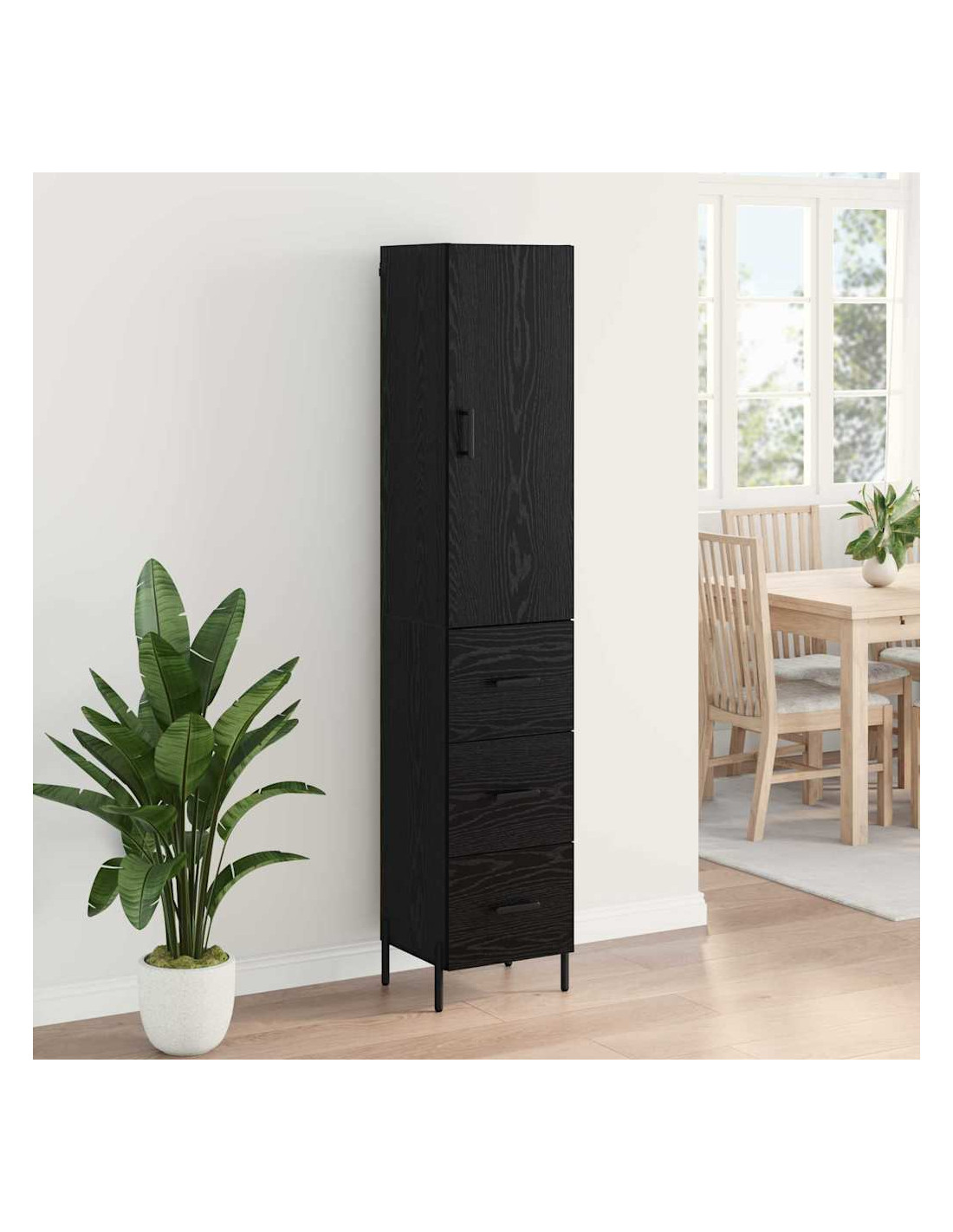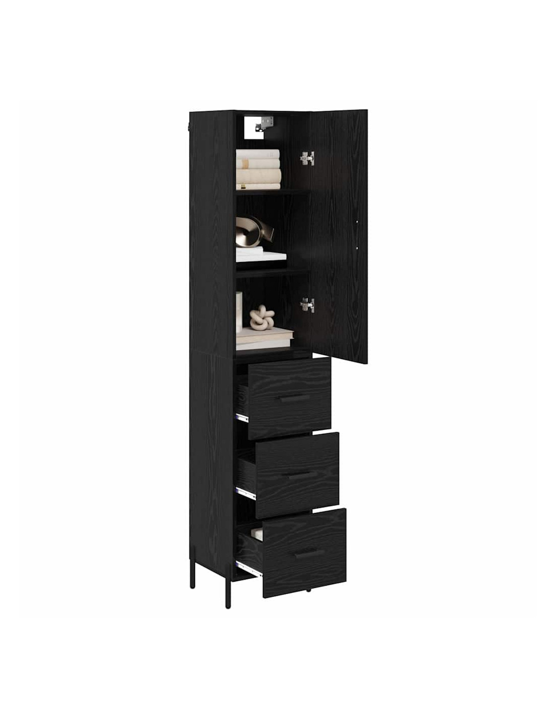 Questo wooden highboard è l'ideale per dare un tocco di stile moderno alla tua sala da pranzo o cucina. La sua forma rettangolare e lineare si integra facilmente in qualsiasi ambiente contemporaneo, offrendo anche un ampio spazio di stoccaggio. Con le dimensioni di 34,5 x 34 x 180 cm, funziona sia come soluzione pratica che come elemento decorativo. La struttura in legno ingegnerizzato garantisce resistenza e durata, rendendolo qualcosa di veramente prezioso per il tuo arredamento. Il mix di gambe in metallo e legno ingegnerizzato crea un contrasto accattivante, valorizzando ancora di più il suo aspetto.