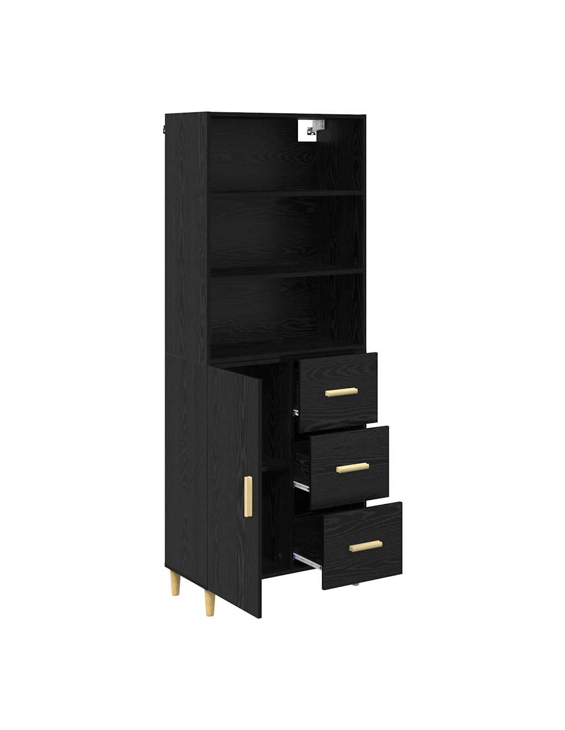 - Gambe a palo robuste Con gambe a palo in legno ingegnerizzato, questo highboard è stabile e ben supportato. La costruzione solida lo rende un'aggiunta duratura, unendo forza e design moderno.