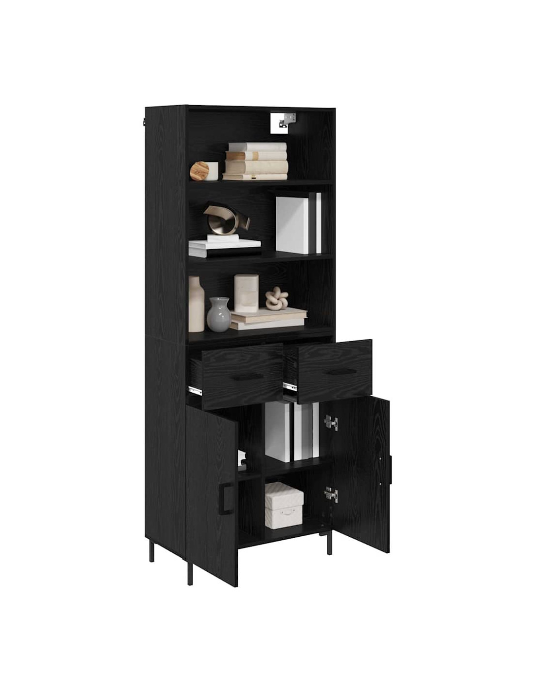 Questa credenza alta moderna è un pezzo chic per lo stoccaggio, perfetta per sale da pranzo o salotto contemporanei. La sua forma pulita e rettangolare è una combinazione armoniosa di stile e funzionalità, ideale per chi ama il minimalismo con un tocco di eleganza. Il suo aspetto semplice e raffinato non sovrasta gli ambienti, anzi li esalta. Con il calore del legno ingegnerizzato, stabilisce un'atmosfera elegante e ordinata, dove design e funzionalità si uniscono per accontentare anche i più esigenti.
