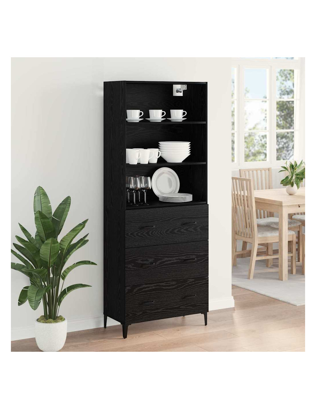 - Struttura in legno ingegnerizzato Questo highboard è fatto di legno ingegnerizzato resistente, perfetto contro i graffi e l'usura. Offre prestazioni durature e un aspetto sempre impeccabile, unendo eleganza e funzionalità.