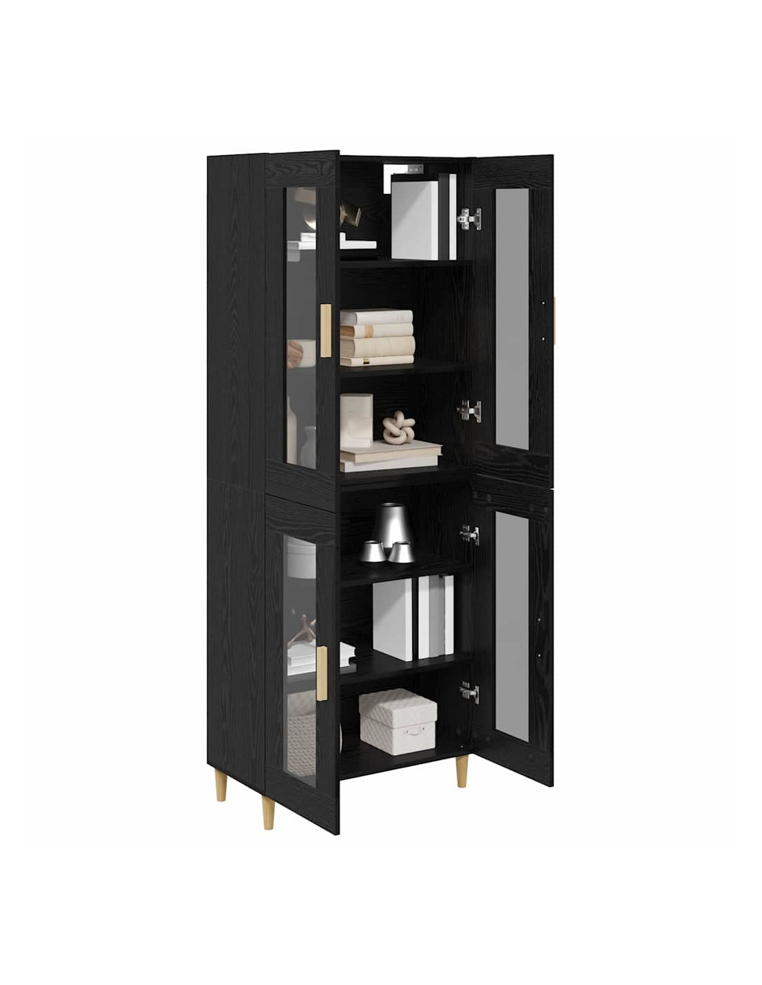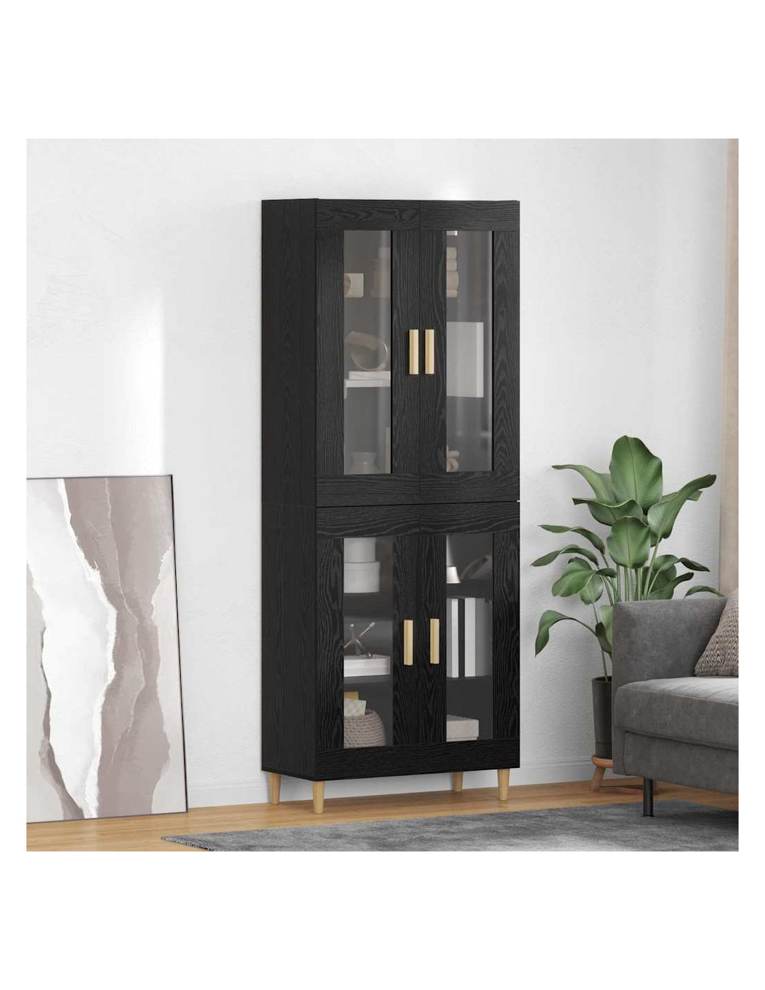 - Porte in vetro e legno eleganti Con una combinazione di porte in vetro e legno ingegnerizzato, l'highboard ha un'atmosfera moderna. Questa unione di materiali offre un aspetto vivace, lasciando intravedere il contenuto rimanendo ordinato per chi lo usa.