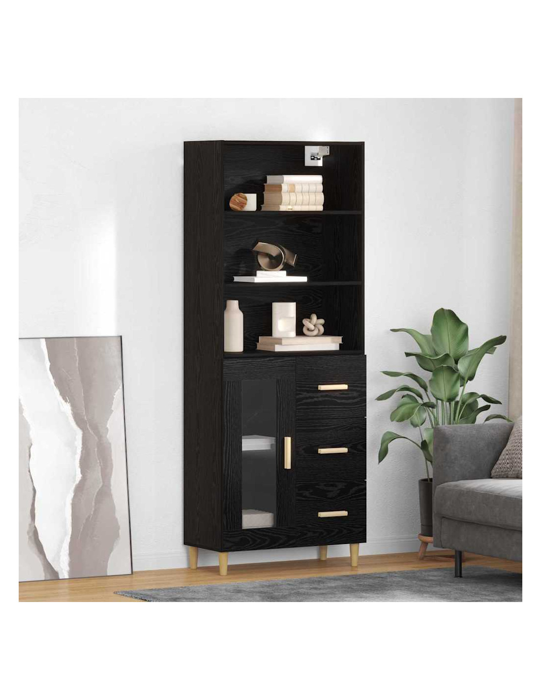 - Materiale in legno ingegnerizzato Realizzato con legno ingegnerizzato di alta qualità, questo highboard è resistente a graffi e usura. La sua durabilità lo rende un elemento imprescindibile nella tua casa per anni, mantenendo fascino e funzionalità.