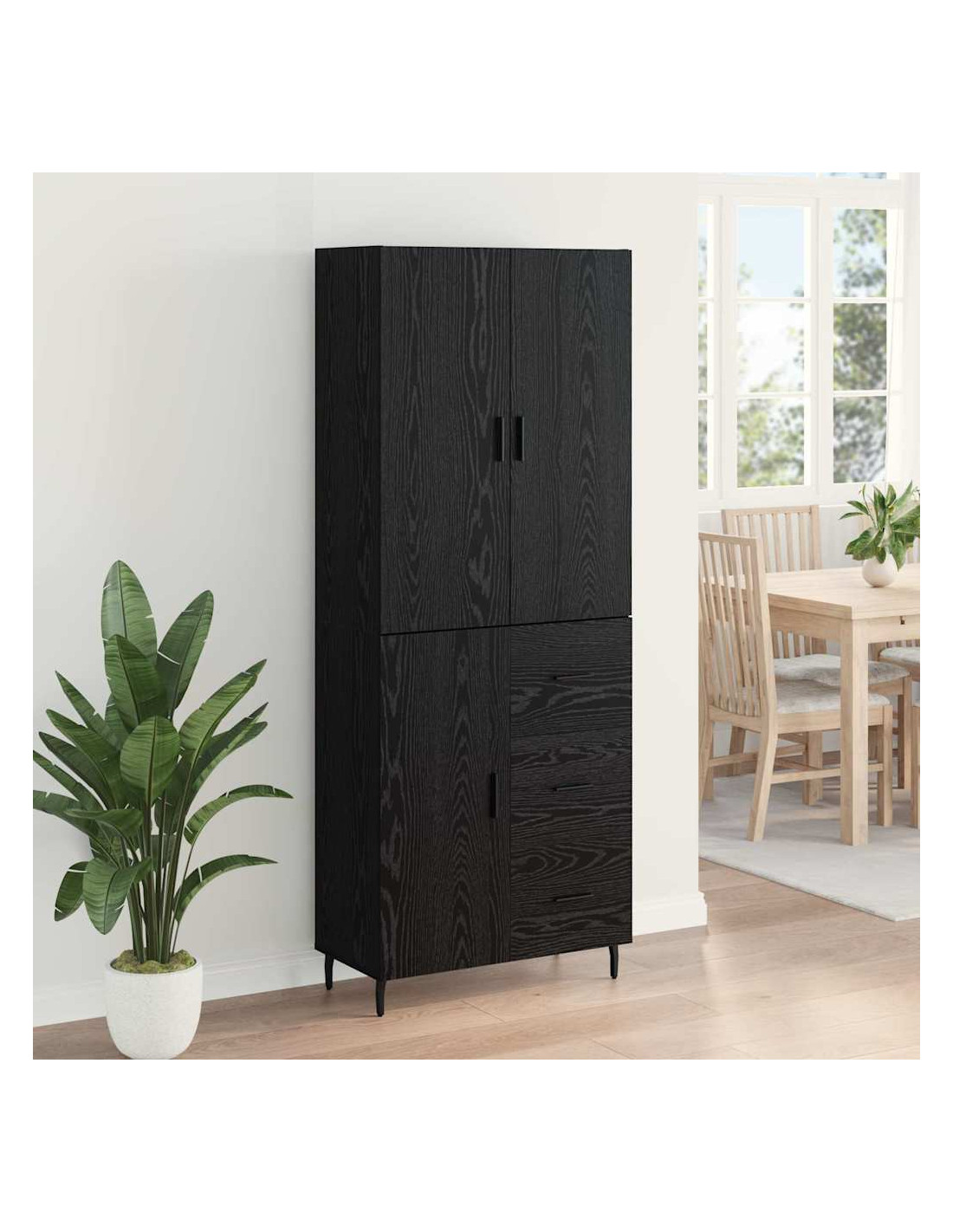 - Design funzionale: Pensato per la praticità, l'highboard ha linee pulite e pochi ornamenti. Si adatta bene a diverse esigenze, rendendolo adatto sia per la sala da pranzo che per il soggiorno e facile da abbinare a vari stili d’arredo.