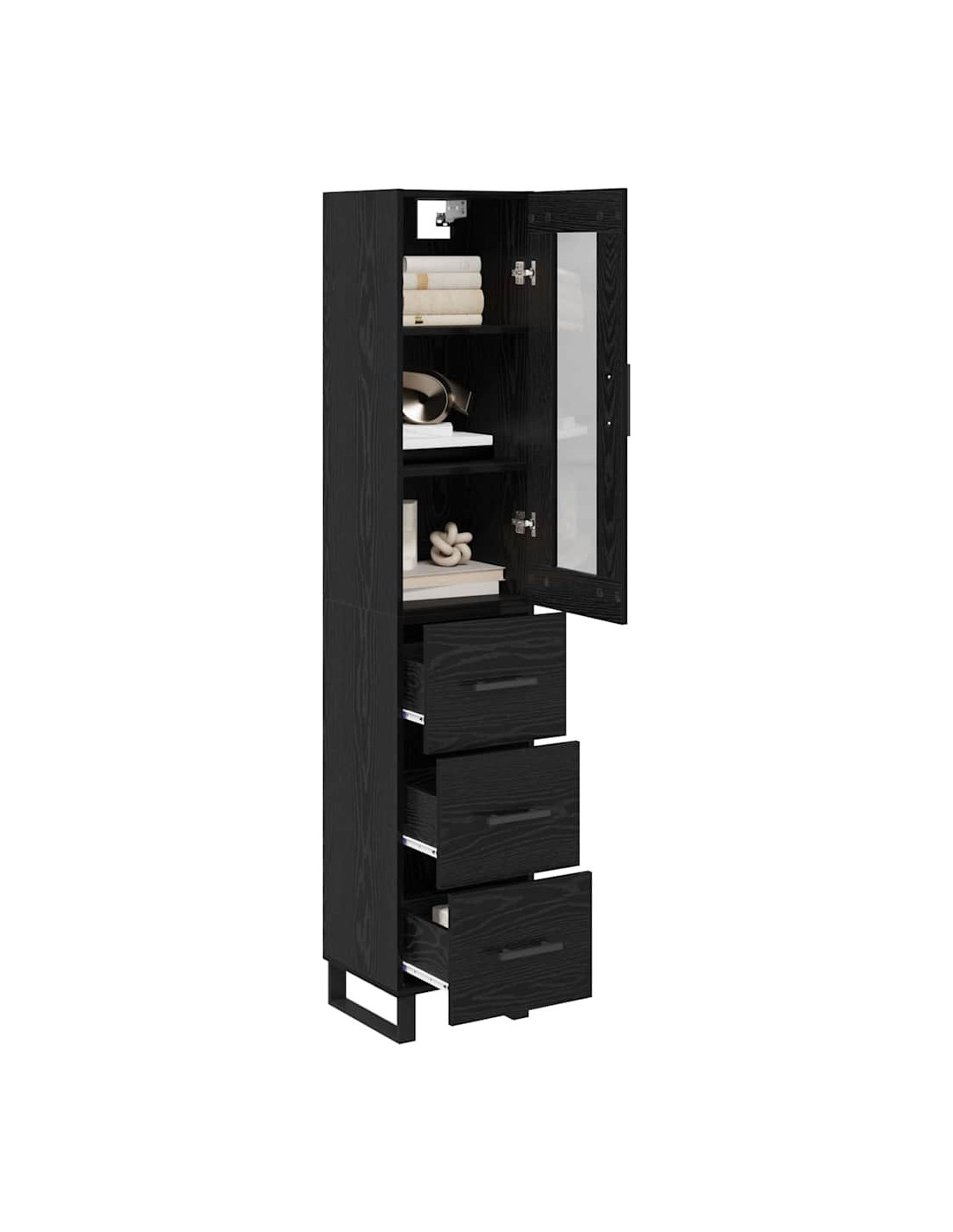 - Piedini in metallo nero: L'highboard poggia su piedini in metallo nero che offrono supporto sicuro. Questi piedi eleganti non solo aggiungono stabilità su varie superfici, ma completano anche il design moderno, rendendolo ancora più attraente.